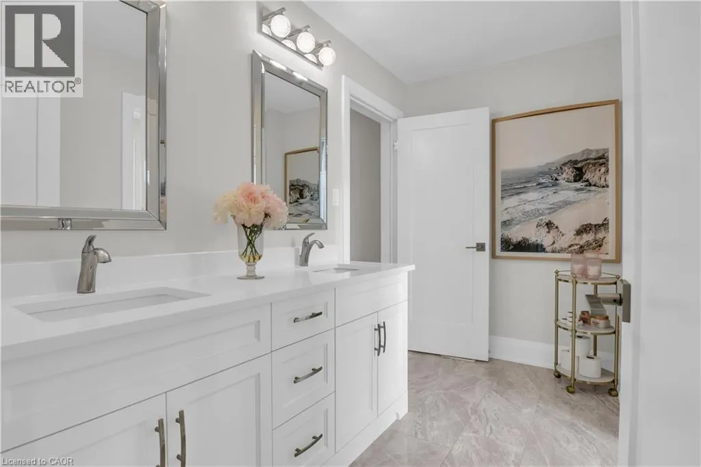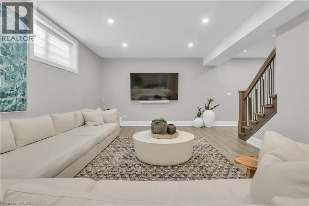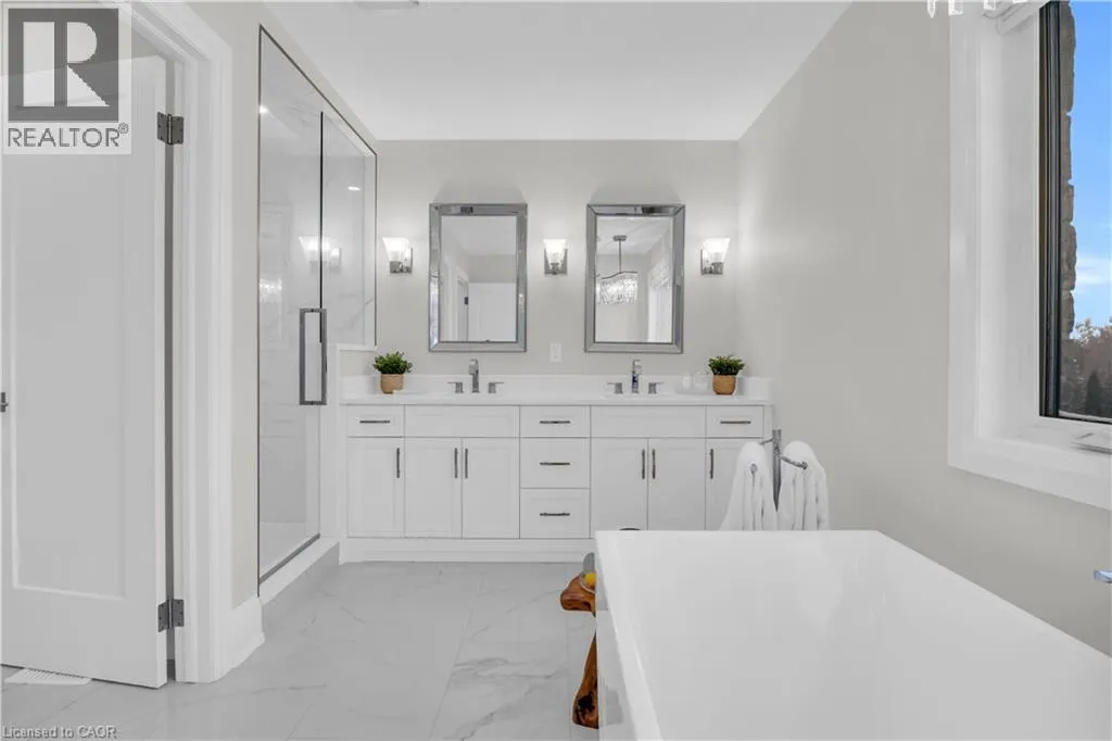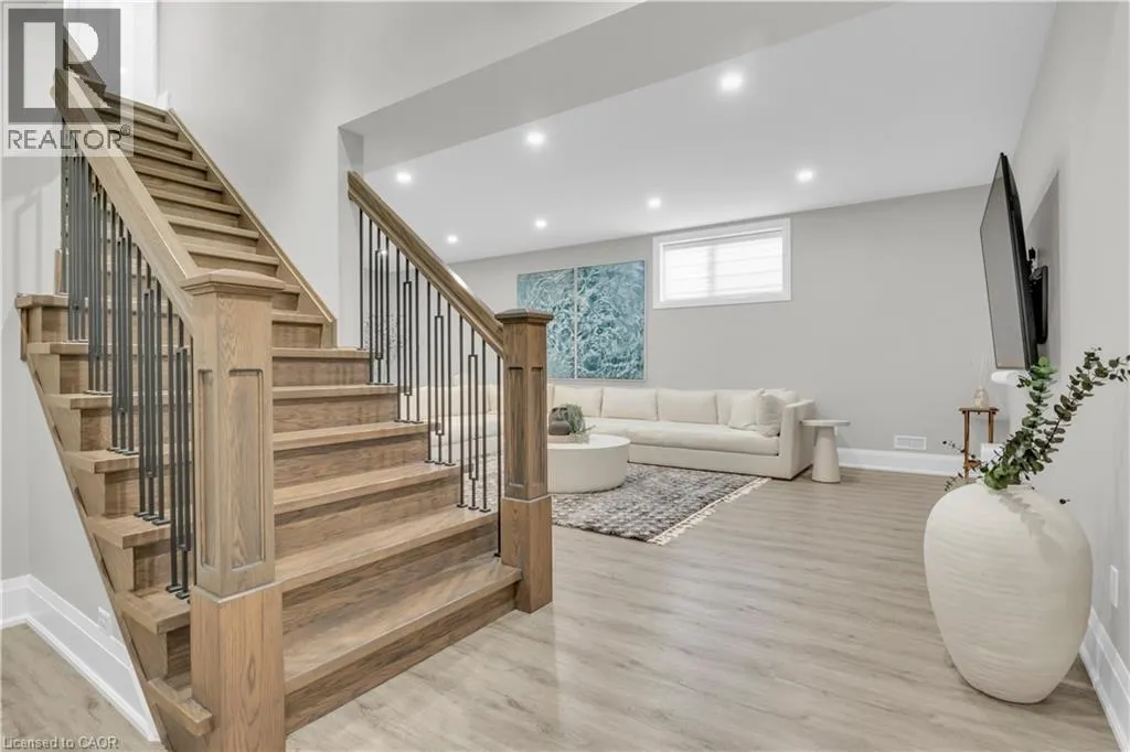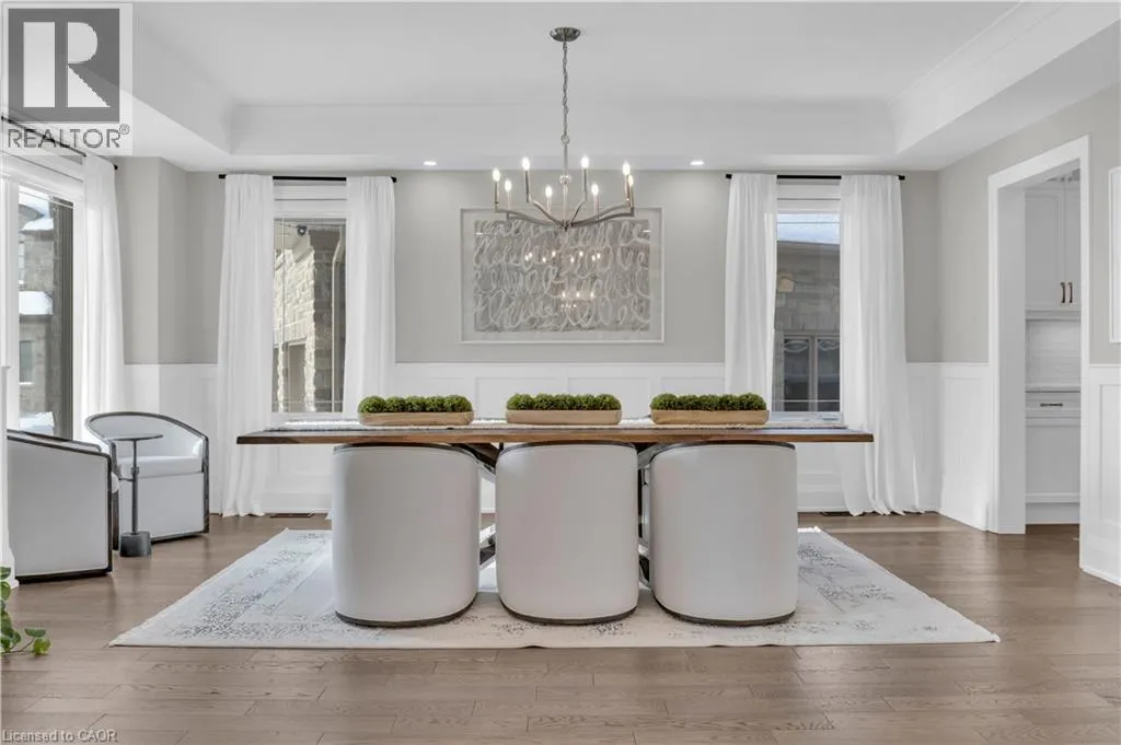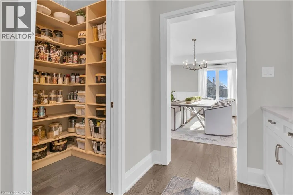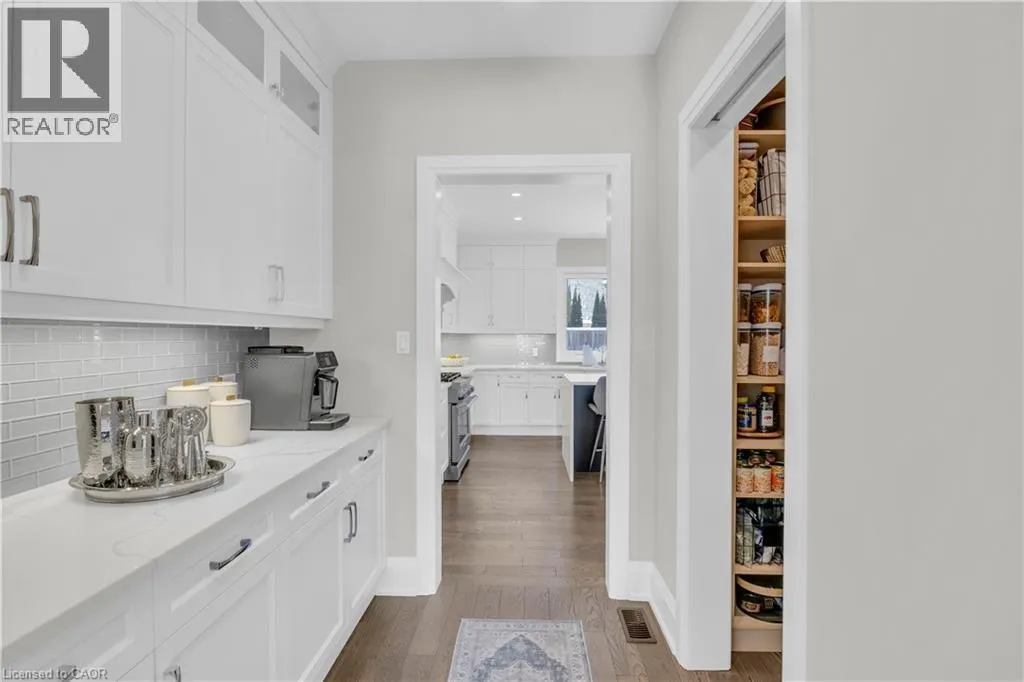 Deer Ridge Dr to Fall Harvest Dr Over 5,700 sq ft of finished living space and located on a large 0.25-acre lot in the sought-after Deer Ridge neighbourhood. Tucked away on a quiet court, this custom-built home offers a comfortable layout with carefully selected finishes throughout. The main entry opens into a bright two-storey foyer, with a formal dining room nearby that connects to the kitchen through a practical servery and pantry. The kitchen features white cabinetry, quartz countertops, a waterfall island, tiled backsplash, a built-in refrigerator, and a dual-fuel range with an oversized hood. The breakfast area includes French doors that open to a covered back porch, making it easy to enjoy the large outdoor space. The family room sits just off the kitchen and includes high coffered ceilings, a large picture window, and a gas fireplace with a floor-to-ceiling mantel. A powder room, mudroom with access to the triple car garage, and a spacious home office complete the main level. The upper floor offers four generously sized bedrooms. Two share a five-piece Jack and Jill bathroom, one includes its own ensuite and walk-in closet, and the primary bedroom features a large walk-in closet and an ensuite with a soaker tub and walk-in shower with rain head. Laundry is also conveniently located on the upper level, and all bathrooms are equipped with heated floors for added comfort. The basement benefits from very high ceilings and large above-grade windows filling the space with natural light. It is currently used as a recreation room, an additional bedroom, and a three-piece bathroom. Additional highlights include smart lighting throughout the home and automatic window coverings, offering added convenience and efficiency. Outside, the home is finished with a stone façade and includes an exterior air and weather barrier system, in-ground irrigation, a security system, and a water conditioning system. This is a great opportunity to settle into one of the most sought-after areas in Kitchener. (id:27476)