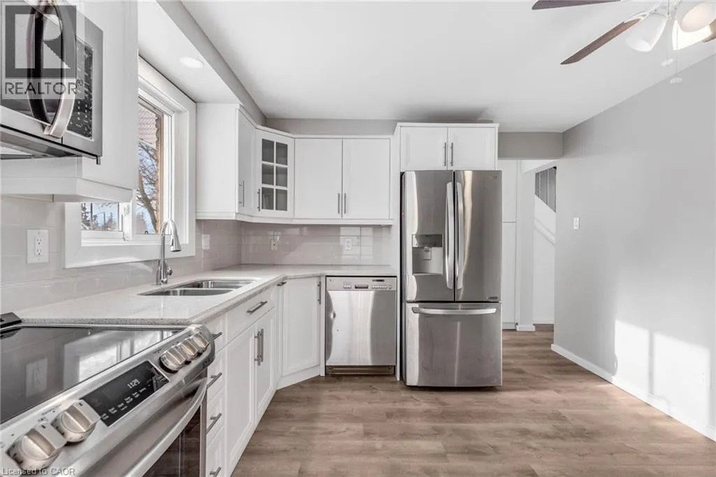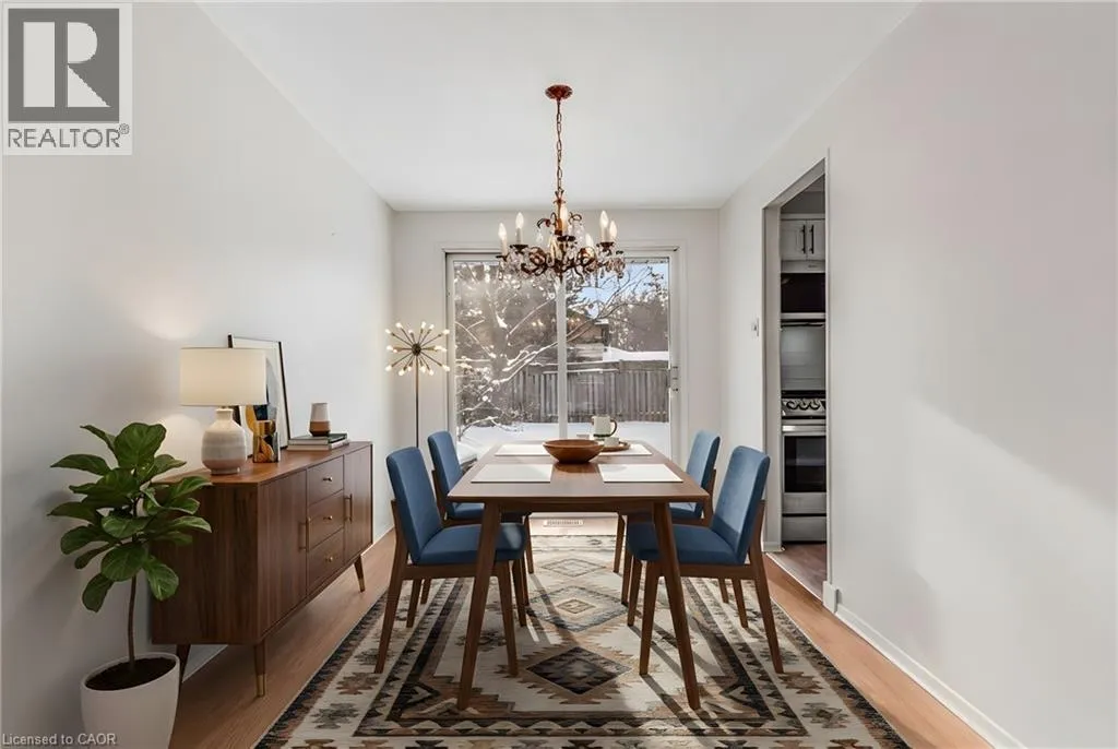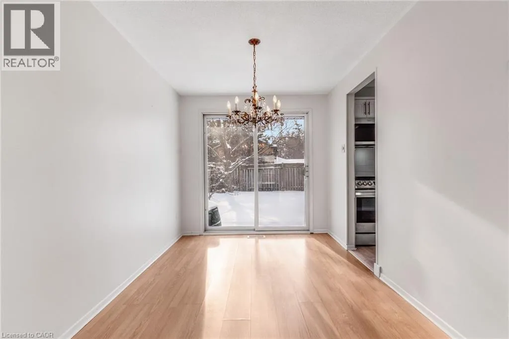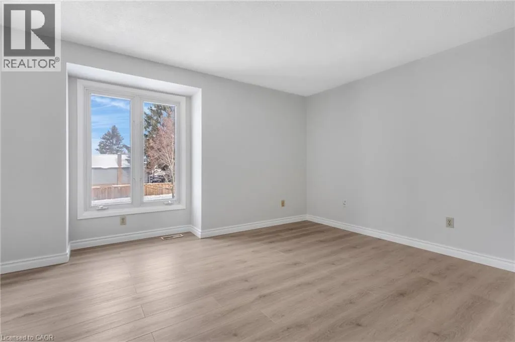 Welcome to this beautifully updated 3-bedroom, 1 ½ -bathroom home located in the desirable Chicopee/Freeport area. Filled with natural light & featuring a carpet-free interior, this home offers a functional layout with thoughtful updates throughout, making it ideal for families, first-time buyers, or investors alike. The main floor features an updated kitchen with soft-close cupboards & drawers, stainless steel appliances, & new vinyl flooring that extends through the kitchen, hallway, & both the front & back entrances. There is a living room with a large window with California shutters, a dining room with a sliding door to the backyard, a powder room, & a side entrance providing direct access to the backyard & garage. Upstairs, you will find 3 generously sized bedrooms & 4-piece bathroom. New flooring has been installed throughout all 3 bedrooms, the hallway, & the staircase, creating a fresh & cohesive feel. The finished basement adds valuable living space with new stairs, a recreation room featuring a wood-burning fireplace & new flooring, a dedicated workshop, & a utility room that includes the laundry area. Outside, the property offers a large single-car garage with ample storage space. The fully fenced backyard is a standout feature, offering access from Morrison Rd & allowing convenient entry for trailers, equipment, or additional vehicles. This versatile outdoor space is perfect for entertaining, relaxing, or providing a safe area for children & pets. The side entrance also enhances the homeâs investment potential. Ideally located, this home provides quick access to Highway 401, Fairview Park Mall, Chicopee Ski & Summer Resort, & a variety of nearby parks & trails, including the Grand River Trail. The Chicopee/Freeport area is well known for its family-friendly atmosphere, access to outdoor recreation, & convenient proximity to schools, shopping, & major commuter routes. (id:27476)