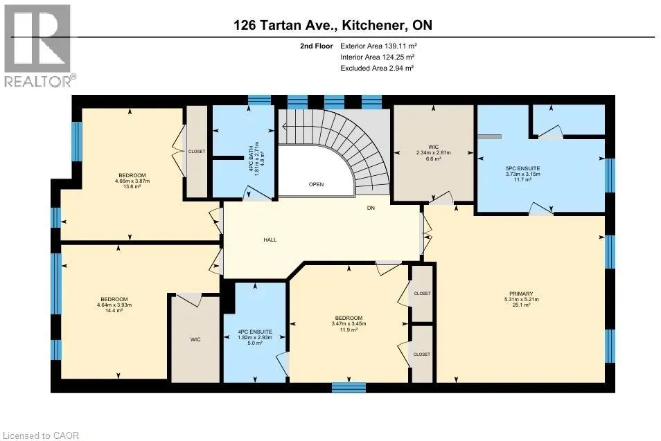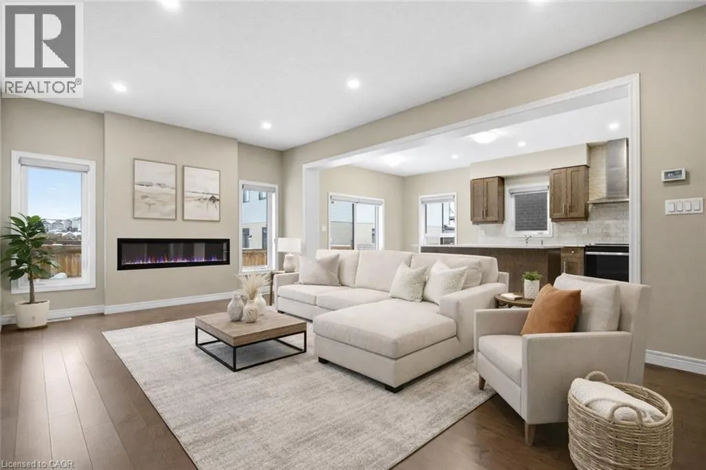Spachman street To Tartan Ave Welcome to 126 Tartan Avenue: an exceptional luxury home offered at an outstanding value. Built by the highly regarded Fusion Homes, this just a few years newer residence situated on a generous 36 x 102 ft lot offers 4 car parking: 2 car garage, 2 Car Driveway. Step inside to a welcoming foyer that impresses with hardwood flooring throughout the main level, matching natural oak stairs. The main floor features 9-foot California ceilings, enhancing the sense of openness and elegance. Beautifully designed kitchen equipped with stainless steel appliances, gorgeous white ceramic brick-style backsplash, quality quartz countertops and extended soft-close cabinetry. The modern living area is bright and inviting, highlighted by a stylish electric fireplace and a wall of large windows that flood the space with natural light, creating an airy and sophisticated atmosphere. Upstairs, youâll find 4 spacious bedrooms, including 2 luxurious primary suites, each with its own private ensuite bathroom, a highly desirable feature. Primary bedroom boasts a large walk-in closet, while all additional bedrooms are generously sized with ample closet space. A third full bathroom on the upper level adds exceptional comfort. The basement offers excellent ceiling height With rough-ins already in place for a future bathroom and egress windows, the lower level is ready for your personal vision, whether itâs a recreation area, home gym, or additional living space. Outside, the partially fenced backyard requires fencing on just one side to be fully enclosed, providing privacy and a perfect setting for kids to play, family gatherings, or outdoor entertaining. Ideally located in a vibrant, family-oriented neighbourhood, this home is steps from Scotâs Pine Park, RBJ Schlegel Park, Top Rated Schools, with walking distance to plazas and quick access to Highway 401, 7/8. A rare opportunity to own a luxury home in an unbeatable location at a fantastic price. Book your private showing today! (id:27476)
