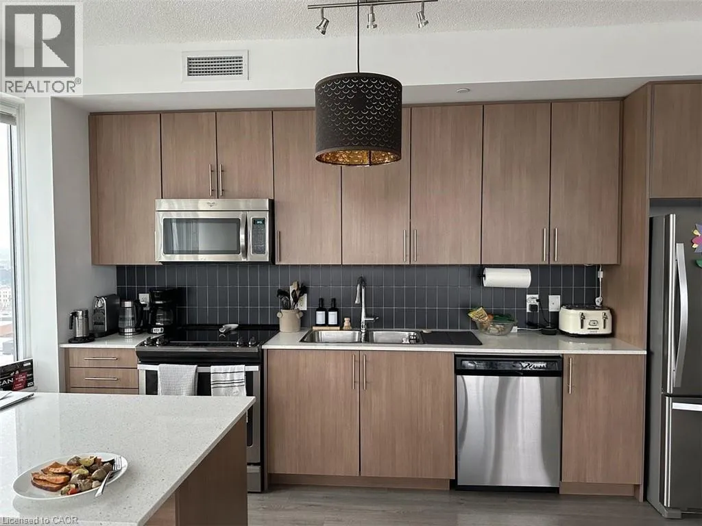 Weber Street West/ Ontario Street North/ Duke Street West Underground parking plus two lockers on the same floor as the unit AND concierge makes this one of the best units in the best building downtown Kitchener! Welcome to the City Center in the heart of Downtown Kitchener. This two-bedroom, two-bathroom, open concept, light-filled living space boasts amazing views of the city. Floor to ceiling windows in the living area and bedrooms, a hallway nook provides the perfect office space to work from home. The unit also offers convenient in-suite laundry, a balcony, and an underground parking space. The building's modern and upscale common areas include a foyer with concierge for your amazon drops and sitting area, a spacious party room, and rooftop deck/ track / gardens. Located within walking distance of amenities, steps to the LRT and public transit, dining, and entertainment venues along King St, a short walk to Victoria Park and Centre in the Square, and easy HW 401 access via HW 8. Completely turn-key and maintenance-free, and ideal for the busy professional on the go or those looking to downsize. (id:27476)