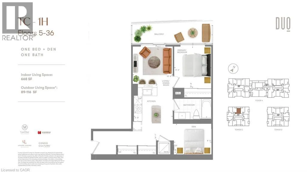 Spacious 1 bed + den suite at DUO Tower C, Station Park. 668 sf interior + oversized balcony (89-116sf) plus Parking & Locker! Open living/dining with modern kitchen featuring quartz counters & stainless steel appliances. Primary bedroom features walk out access to a large double sized balcony. Den offers ideal work-from-home flexibility and is large enough to be utilized as a room in itself. In-suite laundry. Enjoy Station Parks premium amenities: peloton studio, bowling, aqua spa & hot tub, fitness, SkyDeck outdoor gym & yoga deck, sauna & much more. Steps to transit, schools, restaurants, shopping, Google & Innovation District. (id:27476)