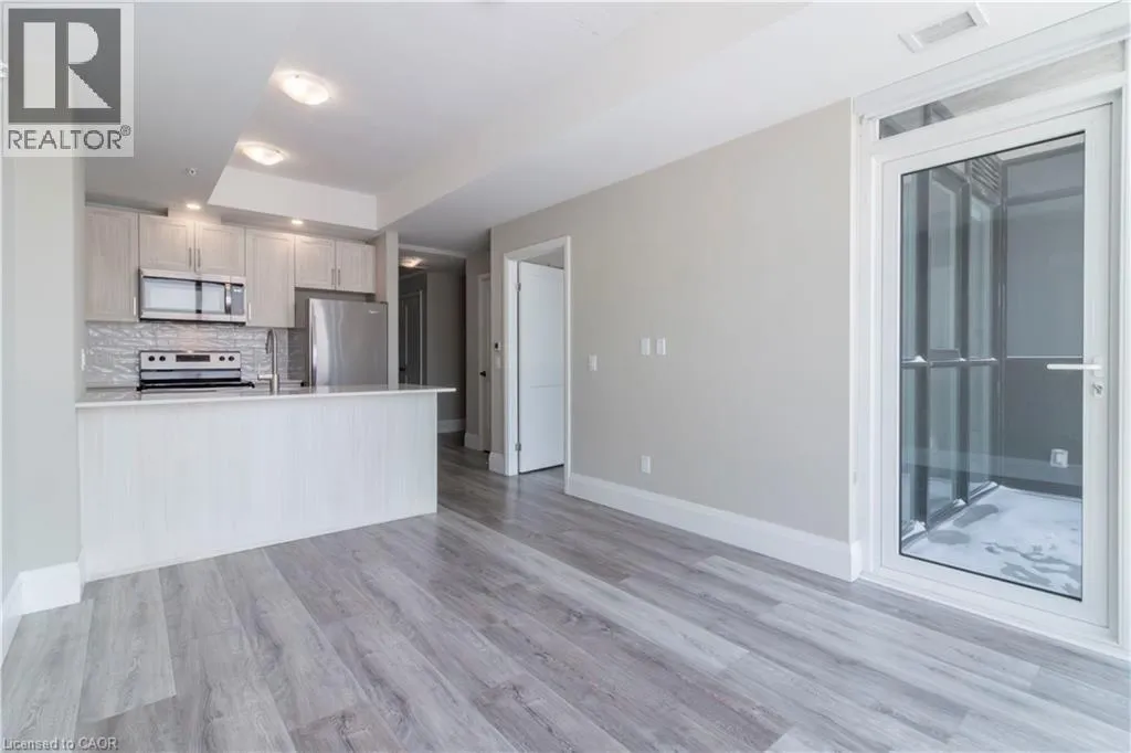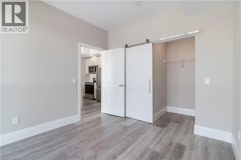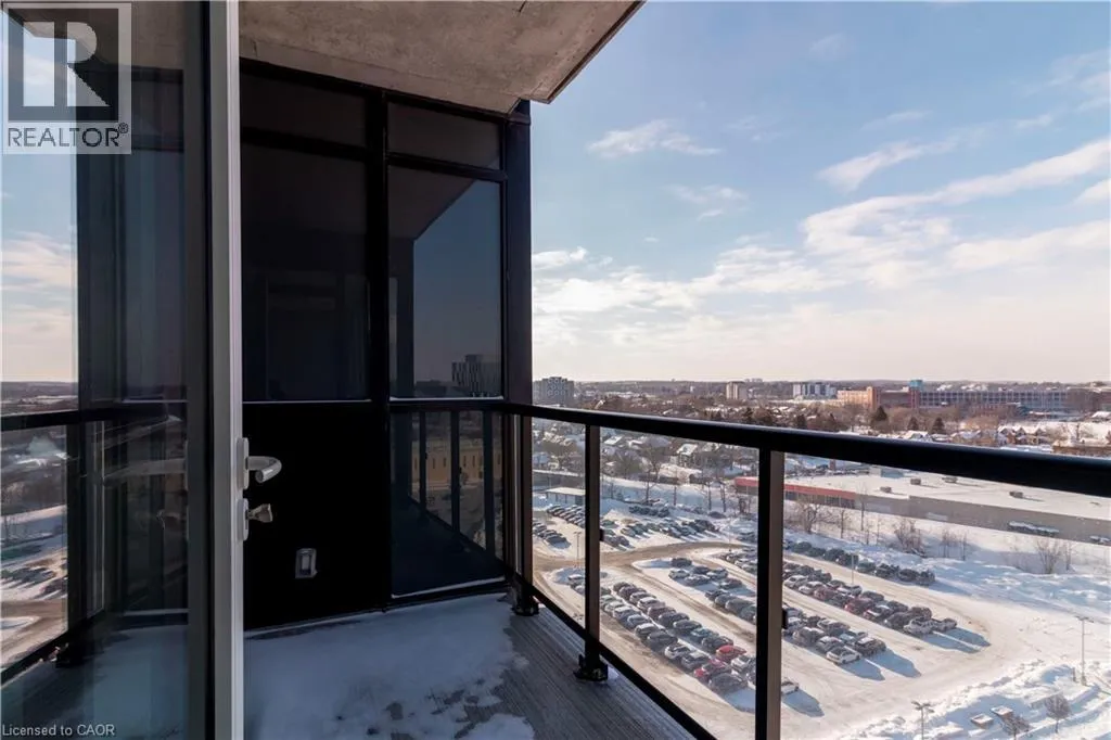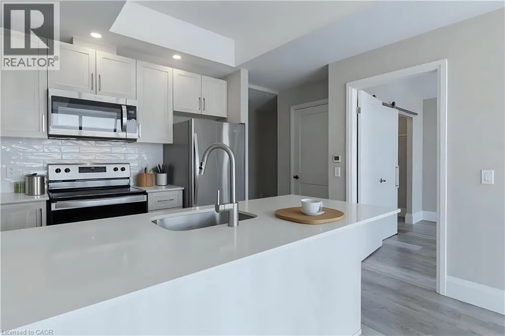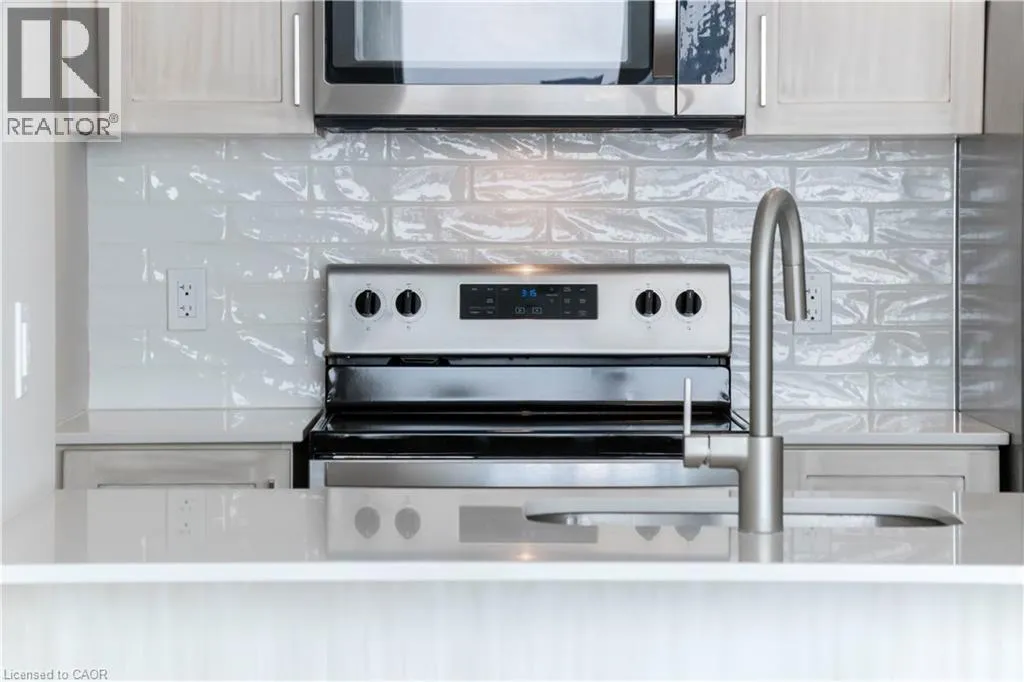Victoria Street and Garment Street - Across from Oak Street Located in Tower 3 of the Garment Street Condos in Kitchenerâs Innovation District, Suite 1209 offers upscale, low-maintenance urban living in a highly connected setting. Laid out in a way that defies its 540 interior square feet, Suite 1209 is sure to impress with soaring ceiling height, floor to ceiling windows and wide plank flooring which combine to create bright and open living space. The modern kitchen includes contemporary cabinetry, quartz countertops, stainless steel appliances, a complementary tile backsplash, plus a peninsula suited to both daily use and entertaining. The bedroom features a walk-in closet, and the unit is completed by a spacious four-piece, bathroom and in-suite laundry. Building amenities include a resort-style rooftop pool, fitness centre, yoga studio, sports court, private theatre, entertainment lounge with kitchen, landscaped rooftop terrace with BBQs, pet run and wash, secure car and bicycle parking, and wireless internet throughout. Steps to Downtown Kitchener, Victoria Park, shops, restaurants, transit, and the future LRT hub, the location also provides easy access to the GO Train, ION Light Rail, and major employers including Google, UW Health Sciences Campus, D2L, Deloitte, and The Tannery. Walk Score: 87 | Transit Score: 64 | Bike Score: 85 (id:27476)