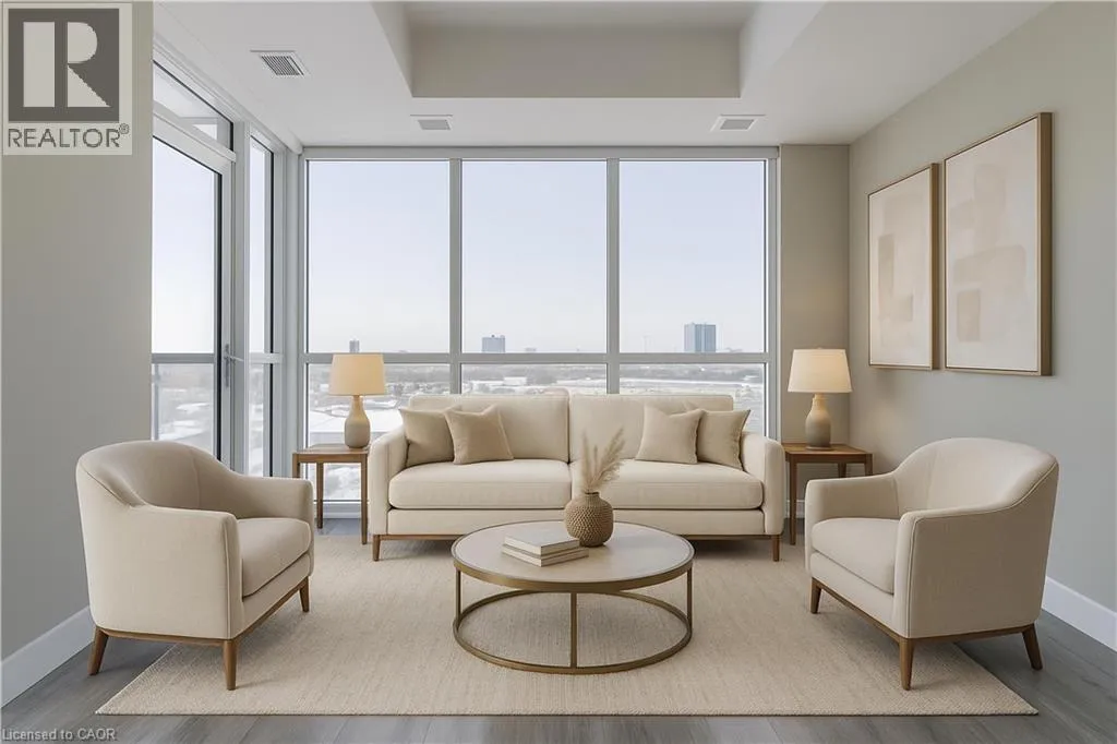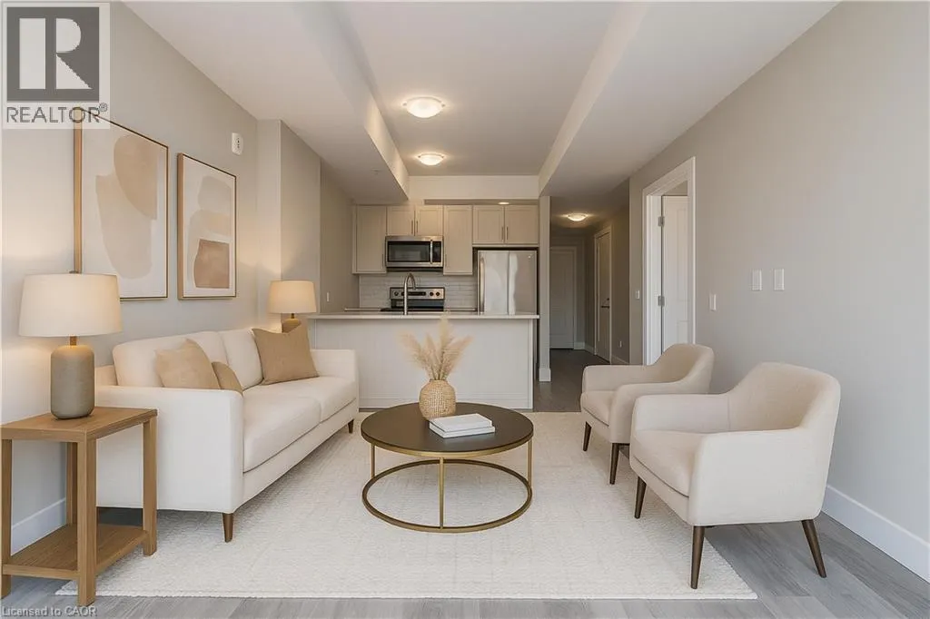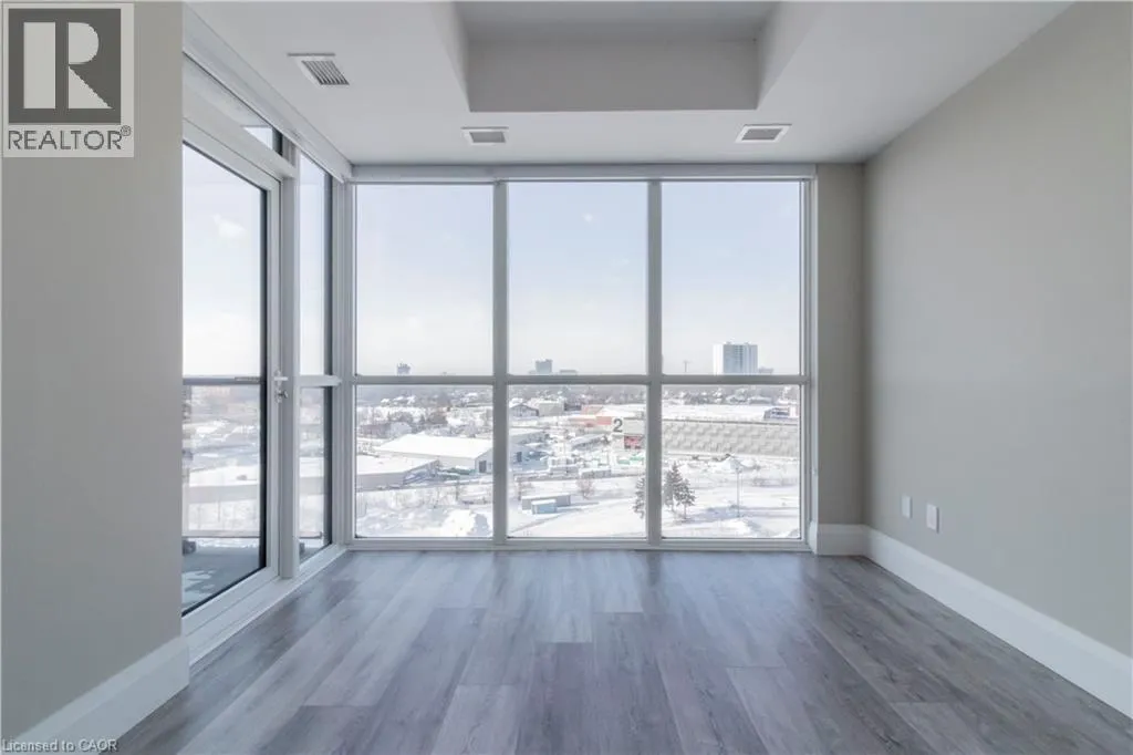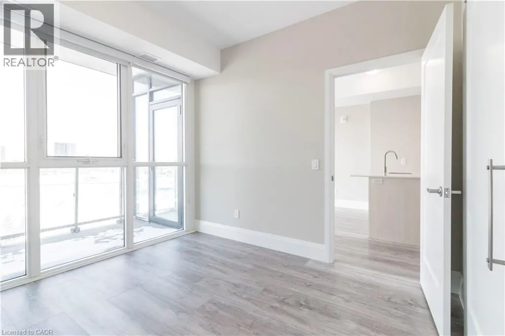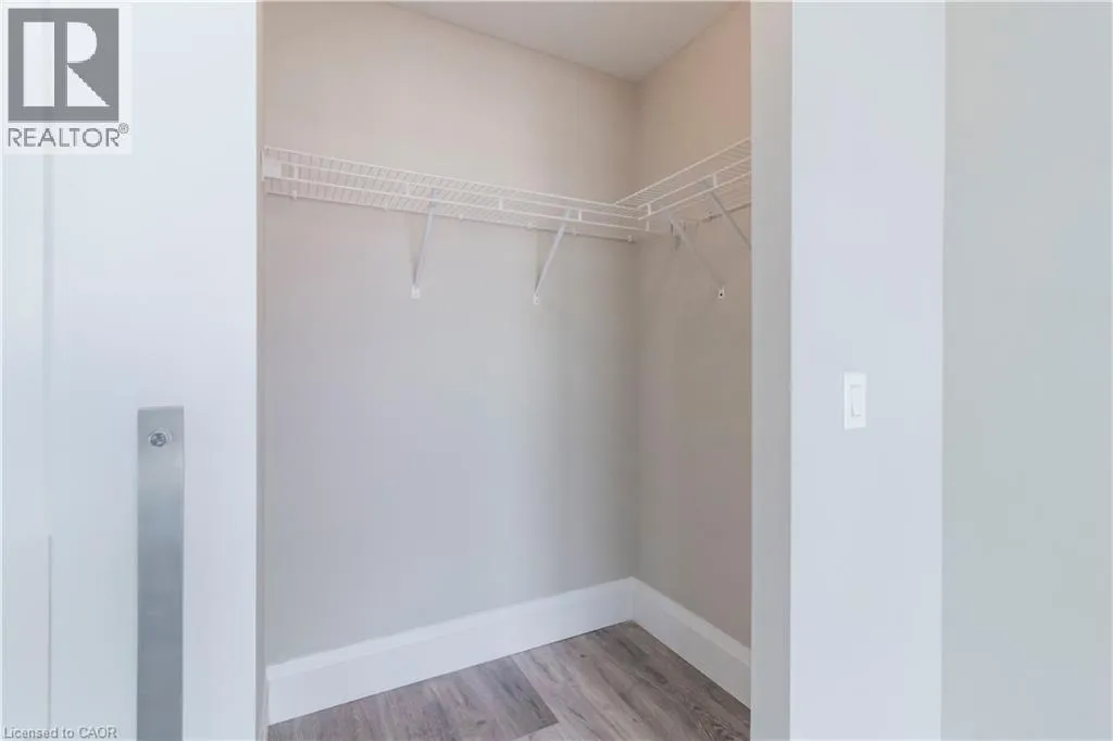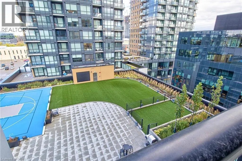 Victoria Street and Garment Street - Across from Oak Street Located in Tower 3 of the Garment Street Condos in Kitchenerâs Innovation District, Suite 1209 offers upscale, low-maintenance urban living in a highly connected setting. Laid out in a way that defies its 540 interior square feet, Suite 1209 is sure to impress with soaring ceiling height, floor to ceiling windows and wide plank flooring which combine to create bright and open living space. The modern kitchen includes contemporary cabinetry, quartz countertops, stainless steel appliances, a complementary tile backsplash, plus a peninsula suited to both daily use and entertaining. The bedroom features a walk-in closet, and the unit is completed by a spacious four-piece, bathroom and in-suite laundry. Building amenities include a resort-style rooftop pool, fitness centre, yoga studio, sports court, private theatre, entertainment lounge with kitchen, landscaped rooftop terrace with BBQs, pet run and wash, secure car and bicycle parking, and wireless internet throughout. Steps to Downtown Kitchener, Victoria Park, shops, restaurants, transit, and the future LRT hub, the location also provides easy access to the GO Train, ION Light Rail, and major employers including Google, UW Health Sciences Campus, D2L, Deloitte, and The Tannery. Walk Score: 87 | Transit Score: 64 | Bike Score: 85 (id:27476)