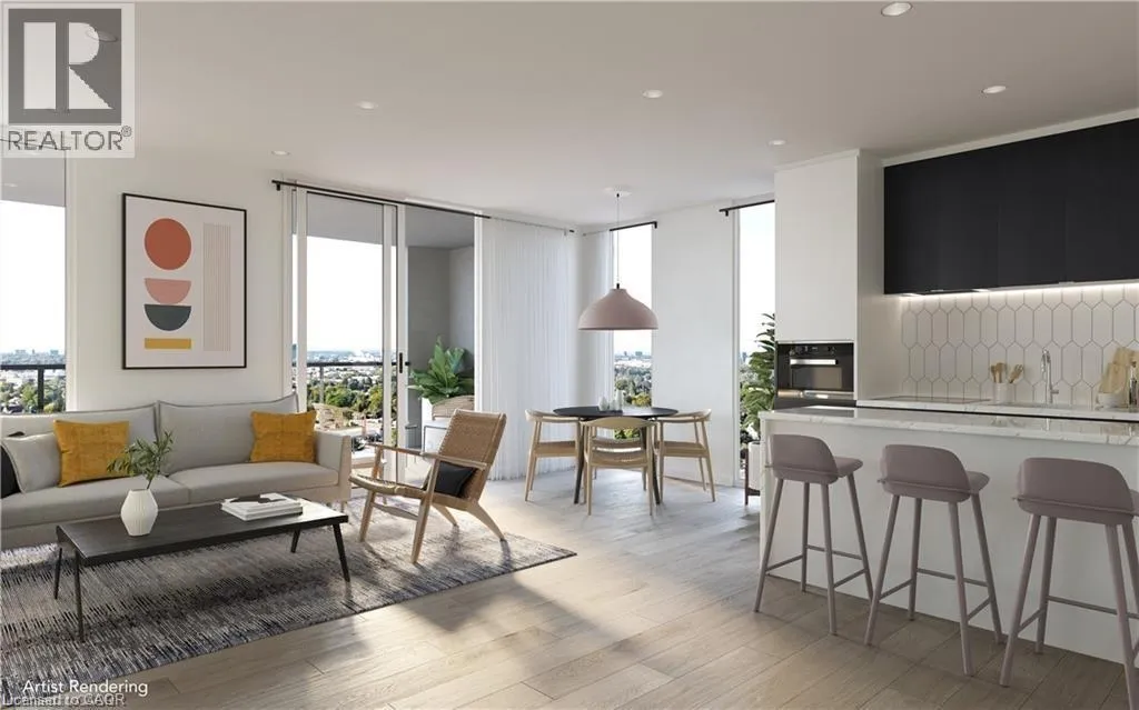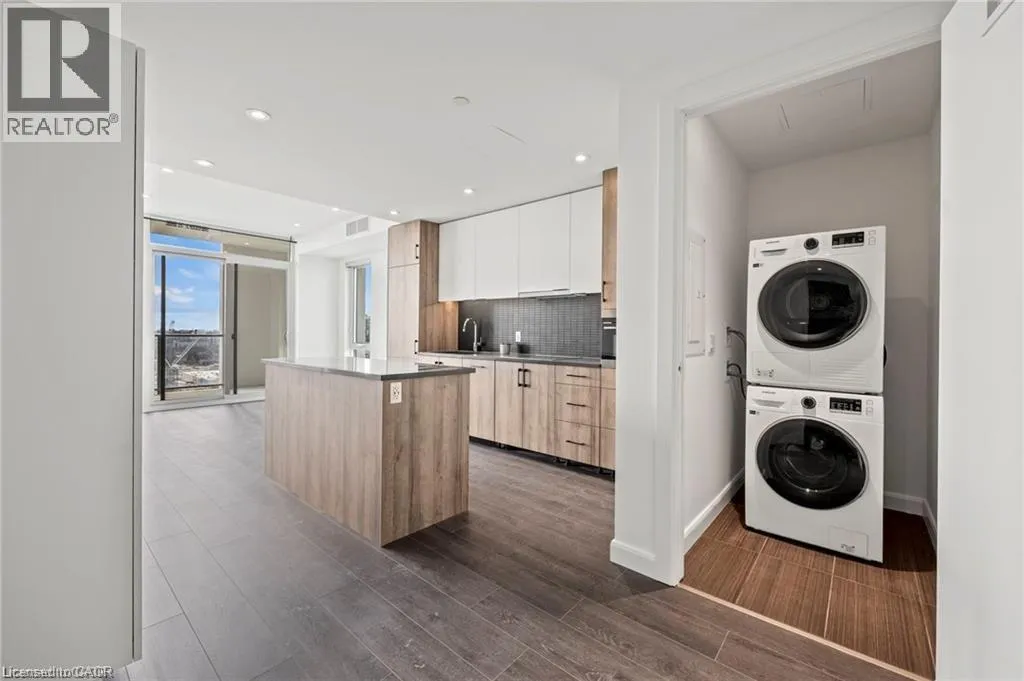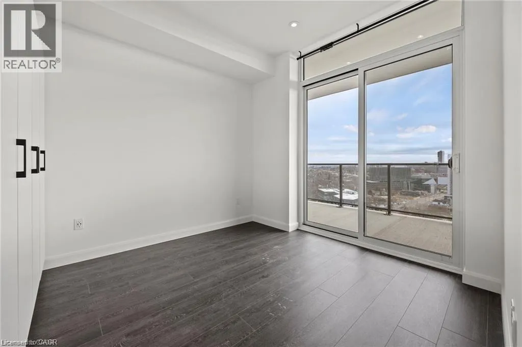 Green St. to King St. W. Welcome to Unit 1512, a thoughtfully designed 1-bedroom, 1-bathroom condo offering comfortable urban living in the heart of Kitchener. This modern suite features costume mill work, an open-concept layout with large windows and balcony that bring in plenty of natural light and showcase city views. The kitchen is well-appointed with contemporary finishes and modern appliances, making it both functional and inviting for everyday living or entertaining. The bedroom is generously sized, providing a comfortable and private retreat, while the bathroom features clean, modern finishes. Residents enjoy access to a variety of building amenities suited to an active and social lifestyle, including a gym, sauna, rooftop terrace, and more. Ideally located just steps from hospital, public transit, popular cafés, and downtown attractions, this unit offers a great balance of location, comfort, and modern design in one of Kitchenerâs most desirable communities. For additional storage, a lock is also included. (id:27476)