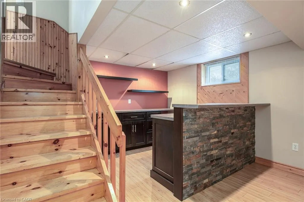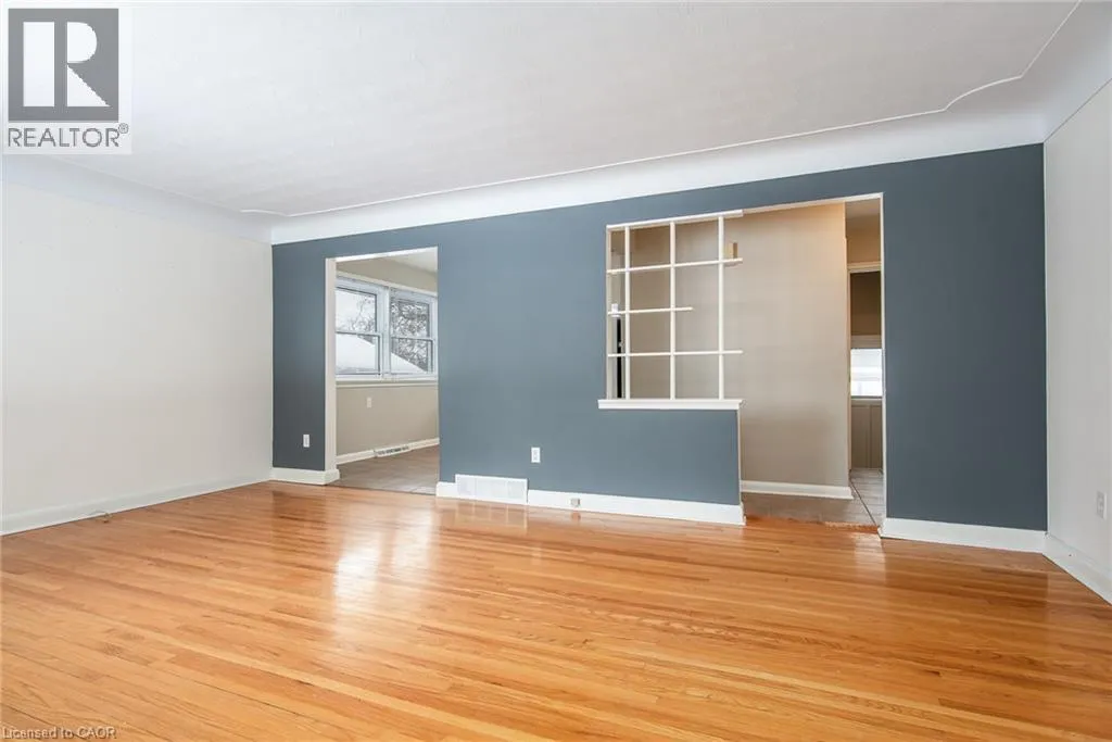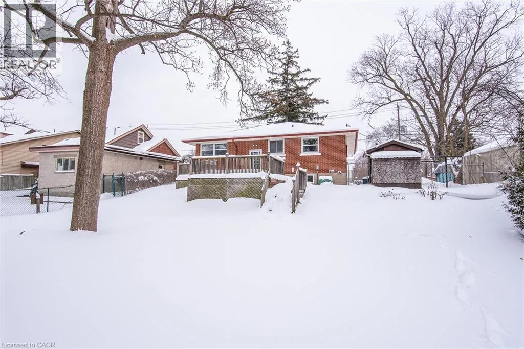 Connaught St and Fourth Ave Well-maintained bungalow on a rare double lot in an established Kitchener neighbourhood. Features 2 bedrooms on the main floor, bright layout with original hardwood, ceramic tile, and a finished basement with rec room, wood stove, wet bar, and additional bedroom. Large rear deck overlooks a private yard. Close to schools, shopping, transit, and Kingsdale Park. Zoned R4 with potential for duplex or future development. (id:27476)