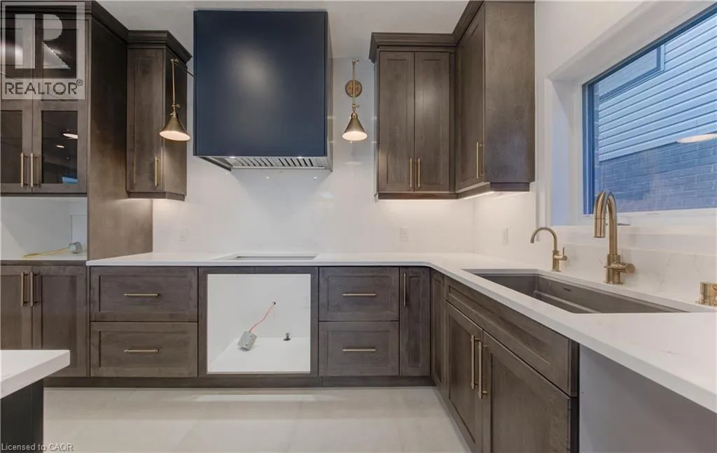 New Dundee Rd to Stauffer Woods Trail Brand new! MOVE IN READY ! Elderberry boasts 2444 sf + 820sf 1 bedroom secondary suite with a separate entrance. It is located in the sought-out Doon South community, minutes from Hwy 401, parks, nature walks, shopping, schools and more. This home features 4 +1 Bedrooms, 2 1/2 +1 baths and a double car garage. The Main floor begins with a large foyer, a mudroom by the garage entrance and a powder room off of the main hallway. The main living area is an open concept floor plan with 9ft ceilings, large custom Kitchen, dinette and great room with a beautiful fireplace. This home is carpet free (only carpeted to basement stairs) finished with quality Hardwoods throughout, 24 x 24 ceramic tiles in kitchen, dinette & foyer, designer tiles in all baths. Kitchen is a custom design with an extra large kitchen island with breakfast bar and quartz counters. Second floor also with 9ft H ceilings features 4 spacious bedrooms and two full baths. Master suite includes a Luxury Ensuite with a walk-in tile shower and glass enclosure and soaker tub. Quarts counters in all baths. In the master suite you will find a large walk-in closet. Fully finished, legal secondary suite in the basement with a separate entrance. 8' 7 high ceilings, full kitchen, living room, bedroom and a 3 pc bath. Available for immediate occupancy. (id:27476)
