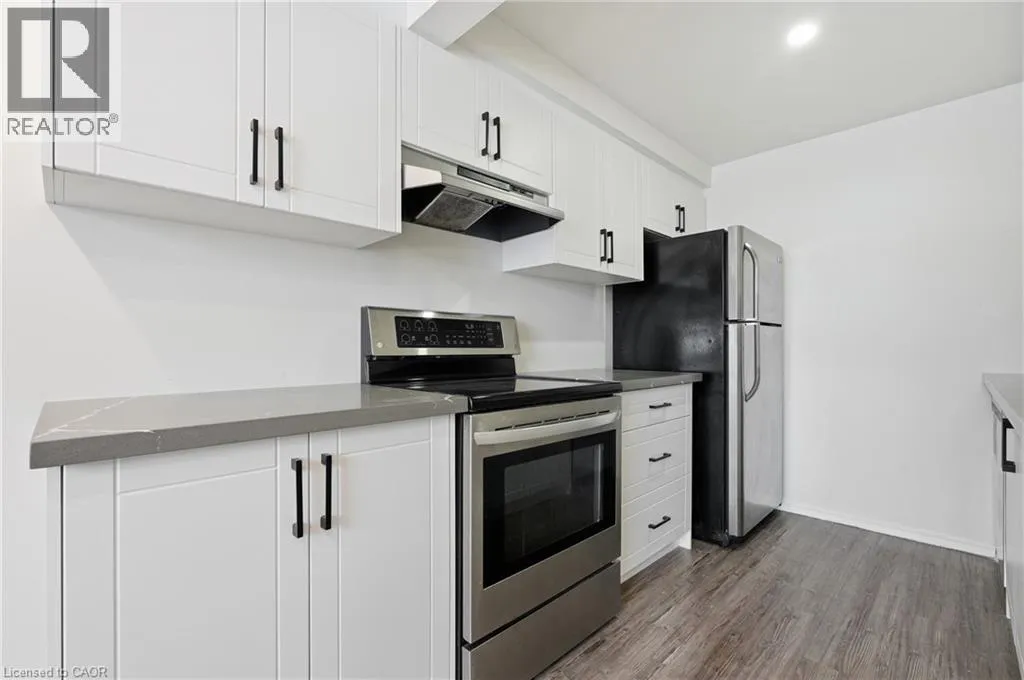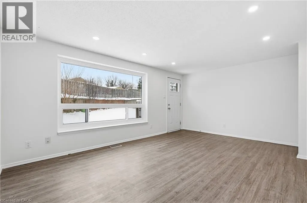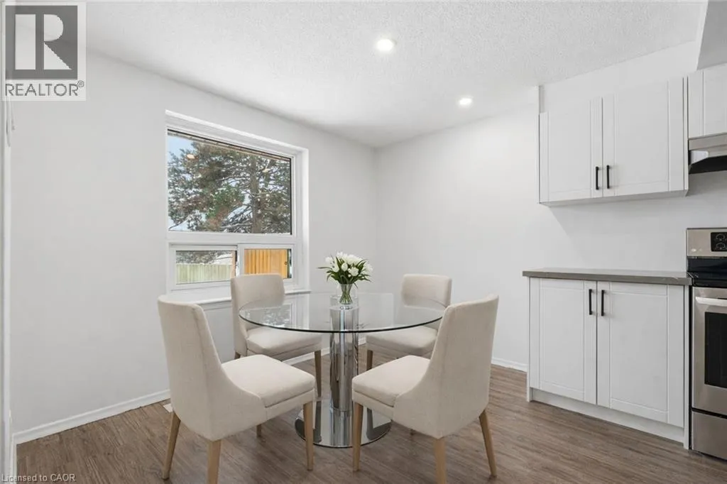 FAIRWAY ROAD N / RIVER ROAD E Welcome to 280 Thaler Avenue, Unit 9, Kitchener, nestled in the highly sought-after Chicopee neighbourhood, known for its family-friendly atmosphere, excellent schools and outstanding access to amenities. This beautifully renovated 3-bedroom, 2-bathroom townhome is truly move-in ready. As you step inside, you are immediately greeted by a bright, airy main level featuring new flooring, fresh neutral paint and stylish pot lights throughout. The spacious living room is a true highlight, showcasing a large new window (installed June 2025) that floods the space with natural light, making it ideal for relaxing and entertaining. The eat-in kitchen has been thoughtfully updated that features sleek white cabinetry, quartz countertops, modern pot lighting and stainless steel appliances with new dishwasher. Heading upstairs, youâll find 3 generously sized bedrooms, each completed with new flooring and pot lights, providing a cohesive and modern look throughout. The upper level is complemented by a stylish 4-piece bathroom. The finished basement adds exceptional value and versatility to this home. It offers a cozy recreation room, perfect for a home office, playroom, media room, or guest space, along with an additional bathroom. The laundry area is conveniently located here, with appliances replaced approximately three years ago and in excellent condition. Significant upgrades including: All windows replaced, with the living room window most recently installed in June 2025 and Central air conditioning replaced in 2018. The condo fee includes full usage of water, maintenance of all exterior doors, windows and roof. Located in a well-managed complex within a family-oriented community, this home is close to Top rated schools including a Catholic school, parks, shopping, public transit and offers easy access to major highways. Whether youâre a first-time home buyer, downsizer or investor, this exceptional townhome checks all boxes. Donât miss your chance, Book your showing today! (id:27476)
