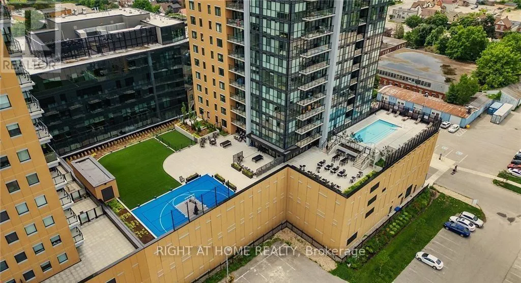 Cross Streets: King & Victoria. ** Directions: Garment and Bramm Street. Enjoy 587 sq. ft. of premium living space with vinyl flooring, stainless steel appliances, and granite countertops.Top-tier amenities include a rooftop pool, sports court, urban park, BBQs, fitness center, yoga studio, and pet run.Water and heat are included for your convenience.Concierge service adds luxury and ease to your lifestyle.Tenant is responsible for electricity (set up with Grid). Parking is available at Bramm St. Yards or through building management. Lot 24 (Bramm Street Yards), located directly behind the building. For January 2026, the monthly rate for this lot is $169.90 (id:27476)