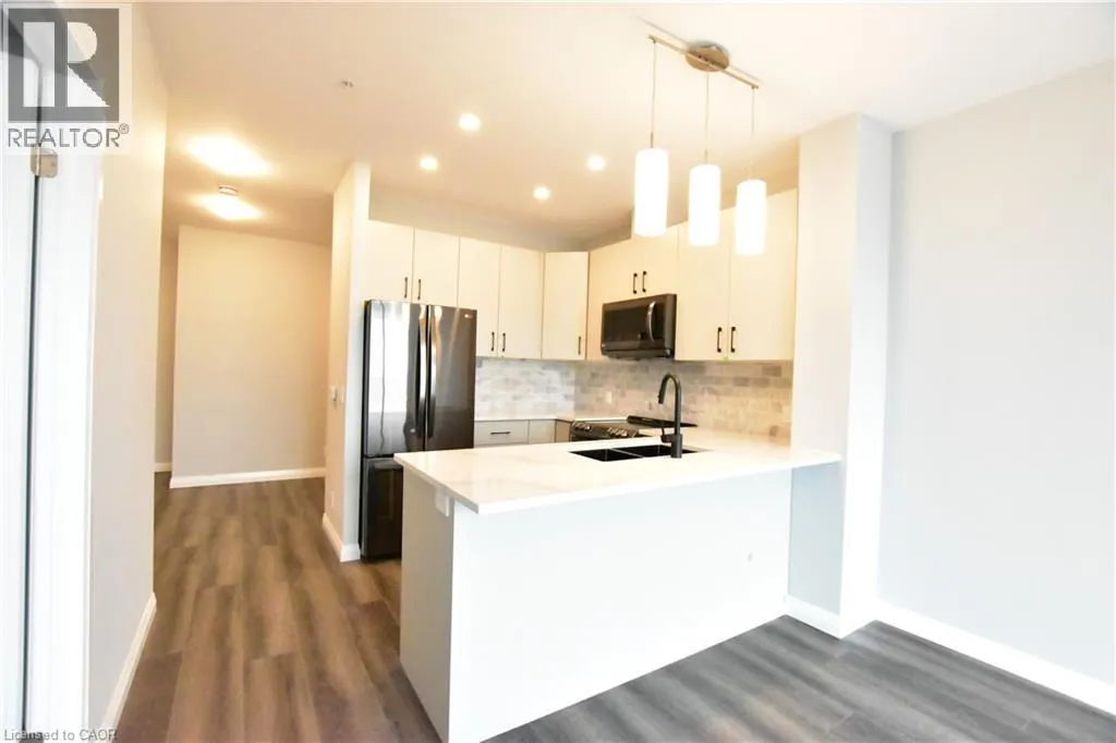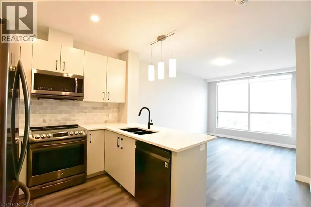 Victoria and Garment Street Spanning over 784 square feet of thoughtfully designed indoor and outdoor space, the suite welcomes you with an open-concept layout that effortlessly connects the living, dining, and kitchen areas. The upgraded U-shaped kitchen stands out with its sleek stainless steel appliances, gleaming granite countertops, and a chic beveled subway tile backsplash, complemented by a central island that invites casual meals or lively conversation. Natural light pours through expansive windows, while blackout roller blinds ensure privacy and comfort in the spacious bedroom, complete with a sprawling walk-in closet and tranquil northeastern skyline views. A separate den, ideal for a home office or flexible dining space, adds versatility to this urban sanctuary, alongside practical touches like in-suite laundry and a spa-inspired 4-piece bathroom featuring a deep soaker tub and tiled shower. Beyond the unit itself, this condo promises a lifestyle of ease and vibrancy. Step onto your private balcony to soak in anoramic city vistas, or take advantage of included amenities like underground parking and same-floor storage. With heat, water, and basic internet covered by the landlord, monthly living becomes refreshingly simple. Located in the heart of Kitchenerâs Innovation District, the building places you steps from the LRT, trendy cafes, eclectic shops, and tech giants like Google, KPMG, and Communitech. Whether youâre commuting to McMasterâs Medical School, the UW School of Pharmacy, or the bustling offices of D2L, everything is within walking distance. This is downtown living at its finestâa harmonious mix of sophistication, convenience, and connectivity, all wrapped in a move-in-ready package. Donât let this rare opportunity slip away; itâs time to claim your place in one of Kitchenerâs most dynamic neighborhoods. A undesignated Parking is located in 1 Victoria St. S. (id:27476)