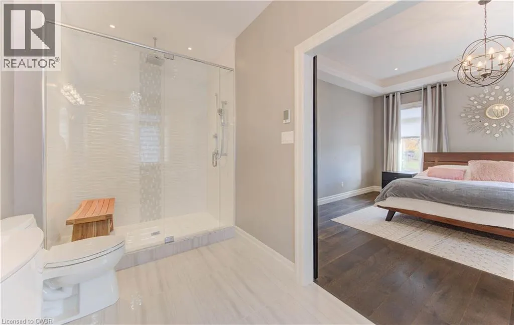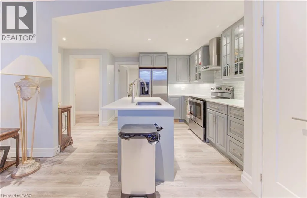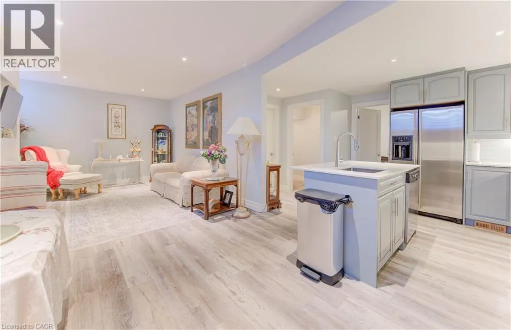 King Street East to Limerick Dr to Edgehill Dr. Welcome to 52 Edgehill Drive, Kitchener, a stunning all-brick and natural stone bungalow that blends modern luxury, functionality, and timeless design. Nestled in the prestigious Deer Ridge community, just minutes from Highway 401, shopping, golf, and scenic trails, this home offers over 3,800 sq. ft. of finished living space, including a spacious in-law suite perfect for multi-generational living. Step inside the 1,925 sq. ft. main floor, where open-concept living meets contemporary style. Enjoy engineered hardwood floors, pot lights, and modern glass railings, creating a bright and elegant atmosphere. The living room features a built-in fireplace and flows effortlessly into the dining area and chef-inspired kitchen with a large centre island, quartz countertops, ample cabinetry, and top-of-the-line stainless steel appliances, including a drink fridge. The primary suite is a true retreat, showcasing large windows, barn doors, and a spa-like ensuite with double sinks, a soaker tub, a tiled walk-in shower, and a spacious walk-in closet. Two additional bedrooms, two additional bathrooms, and main-level laundry complete this exceptional floor. The finished basement adds another 1,155 sq. ft., featuring a generous recreation room with plush carpeting, pot lights, and a fireplace, along with an additional bedroom and bathroom. The separate 768 sq. ft. in-law suite offers open-concept living, dining, and kitchen areas with engineered hardwood floors, pot lights, a fireplace, stainless steel appliances, one bedroom, one bathroom, and separate laundry with storage. Outside, enjoy the covered deck with a built-in fireplace, perfect for year-round entertaining. The extra-wide concrete driveway accommodates 8+ vehicles, complementing the triple-car garage. A rare find that combines elegance, space, and versatility, 52 Edgehill Drive is the ideal home for families seeking comfort and style in one of Kitchenerâs most desirable areas. (id:27476)