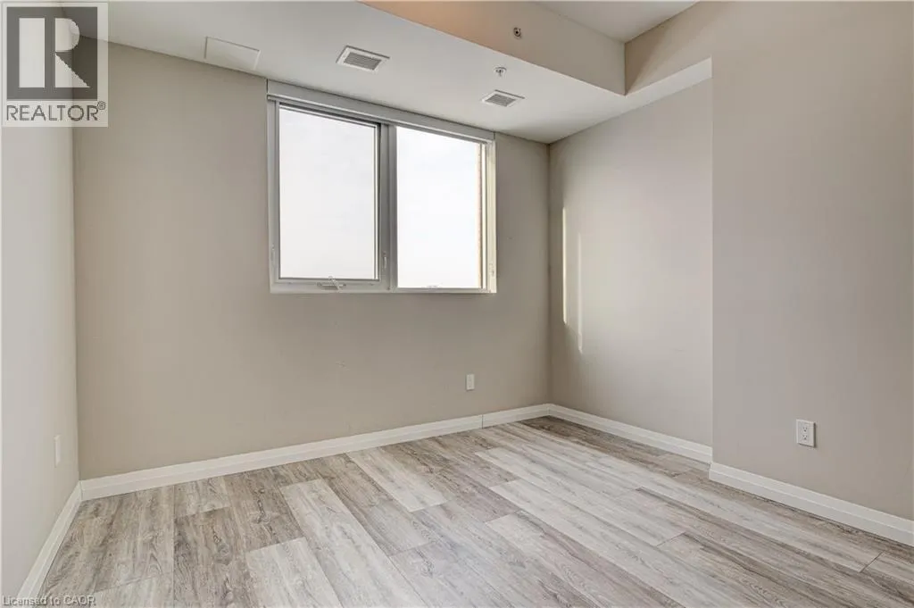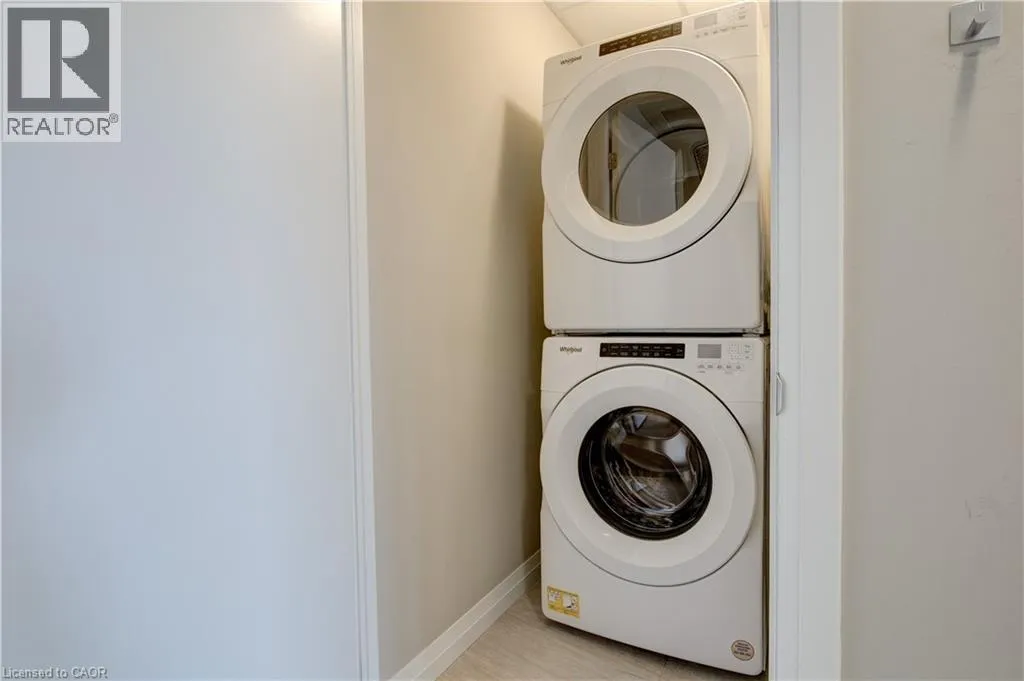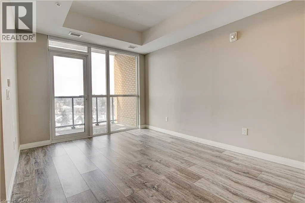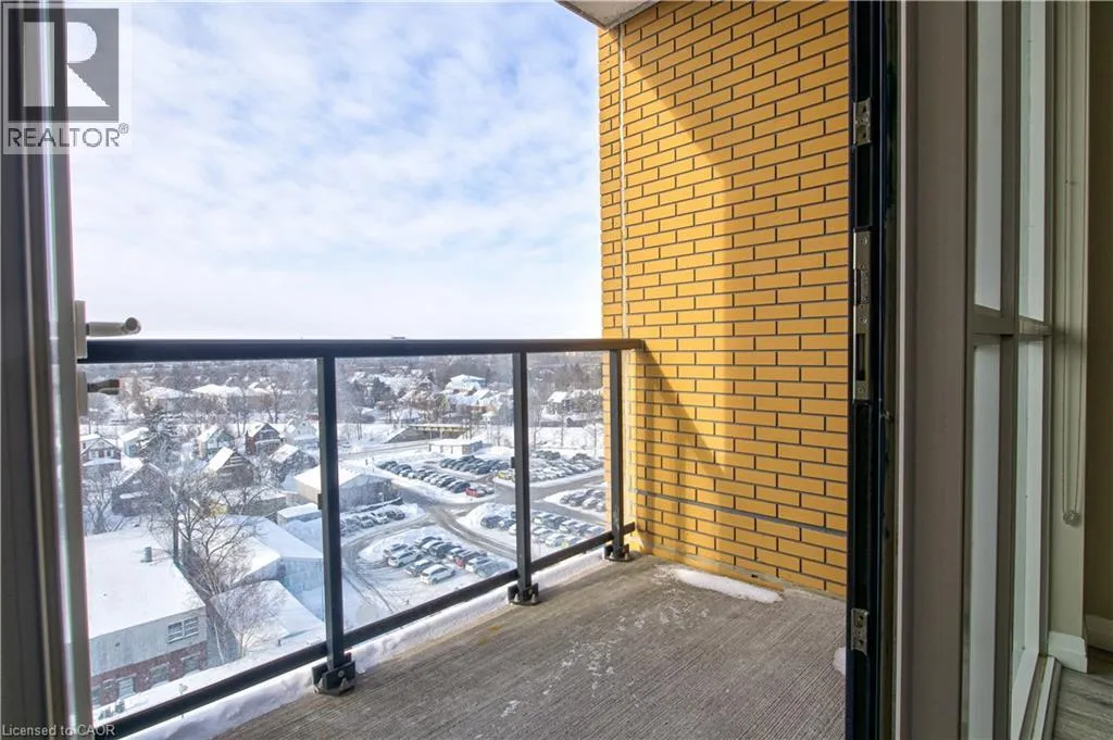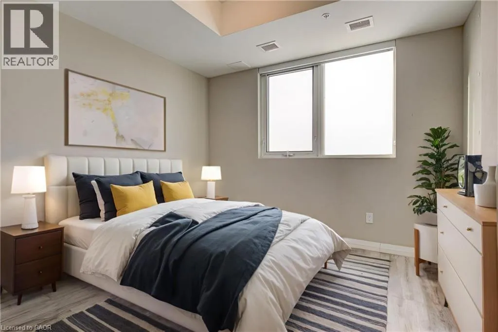 North onto Bramm Street off of Victoria Street South. Located just steps to downtown Kitchener and the beautiful Victoria Park, this 1 bedroom plus den condo at 108 Garment Street offers a welcoming place to settle into city living. Completed in 2022, the unit features a practical layout and a kitchen that truly anchors the space. Upgraded appliances and cabinetry, a double sink, dishwasher, and generous counter space make it easy to cook at home, while the extra-long peninsula comfortably seats three to fourâideal for casual meals or hosting friends. The living area flows easily from the kitchen and opens to a private west-facing balcony, offering a quiet place to unwind in the afternoon and evening. The den adds valuable flexibility, working equally well as a home office, extra storage, or cozy reading nook. The bedroom is comfortably sized, and the unit is completed by a contemporary bathroom and the convenience of in-suite laundry. Indoor garage parking for one vehicle and a storage locker are included with the unit. Residents also enjoy access to a well-equipped fitness room, yoga space, party room, and an outdoor terrace featuring a pool, basketball court, BBQ area, and plenty of seating for gathering with friends. Ample visitor parking next door makes hosting easy. With shops, transit, dining, and the tech district just outside your door, this home offers an easy, low-maintenance lifestyle in a central location. (id:27476)