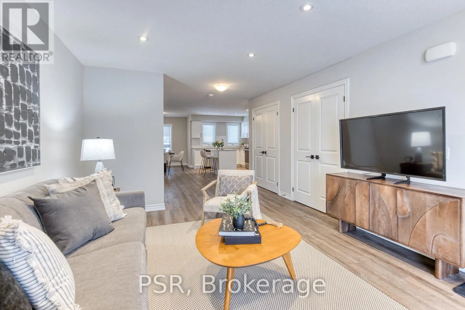 Cross Streets: Robert Ferrie Drive. ** Directions: Robert Ferrie Drive to Chapel Hill. Step Into This Bright And Stylish Home Offering An Open-Concept Layout And A Mostly Carpet-Free Design, With Carpeting Limited To The Stairs. Sun-Filled Rooms Are Enhanced By Large Windows Throughout, Creating An Inviting And Airy Atmosphere. The Heart Of The Home Is The Beautifully Upgraded Kitchen, Featuring Quartz Countertops, Soft-Close Cabinetry, A Timeless Subway Tile Backsplash, And A Large Island Perfect For Entertaining Or Casual Family Meals. A Full Suite Of Stainless Steel Appliances Completes The Space. The Living Room Is Accented With Modern Pot Lights, Adding Both Style And Ambiance. This Home Also Features 3 Generously Sized Bedrooms And 2.5 Bathrooms, Including A Private Primary Ensuite Designed For Comfort And Convenience. Ideally Located Close To Highway 401, Schools, Parks, Scenic Trails, And Shopping, This Home Delivers The Perfect Blend Of Modern Living, Comfort, And Everyday Convenience. (id:27476)