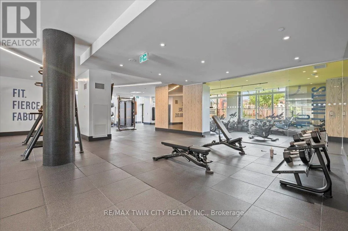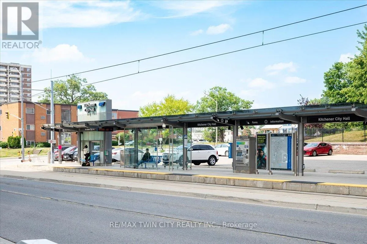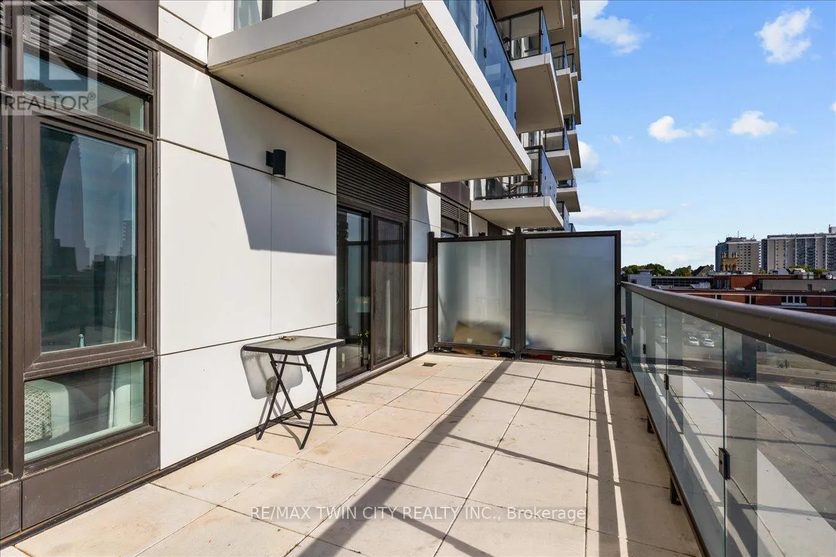 Cross Streets: YOUNG. ** Directions: King St to Victoria to Duke. Elite DTK condo! 505 maximizes utility of the space and achieves a grand feel with the tall ceilings, open concept layout, and unobstructed easterly Kitchener skyline views. This unit sits at the same level as the roof top patio with BBQ access just down the hall. The eat in kitchen with center island, contemporary cabinetry, stainless steel appliances, and quartz countertops is open to the versatile living room space, which sits parallel to the bedroom and both overlook the 204 sq ft private terrace, bringing the total indoor/outdoor size of the unit to 675 sq ft. Click flooring flows throughout the unit. One of the most successfully integrated condo buildings in the downtown core, reconstructing the John Forsyth Shirt Company, Duke Street level façade & capturing the historic landmark while moving the city forward with urban renewal. The building amenities are impressive; a clean and modern lobby with a full-time concierge service, comfortable sitting spaces and open to the ground level state of the art fitness center, complete with heavy bags and exercise bikes surrounded by windows connecting you to the outdoors. Truly unique is your ability to take your fitness journey outside to the 25th floor, roof top running track while you enjoy the stunning 360-degree views. When its time to relax or entertain larger groups, take advantage of the 5th floor, furnished patio and party room, overlooking the Duke Street forecourt. The building also includes car wash station, dog wash station, and artificial turf dog walk. Short walking distance to Victoria park, charming cafés, popular restaurants, boutique shops, and LRT. Downtown Kitchener is changing to become a popular urban center and now is the time to take advantage. Dont miss out (id:27476)