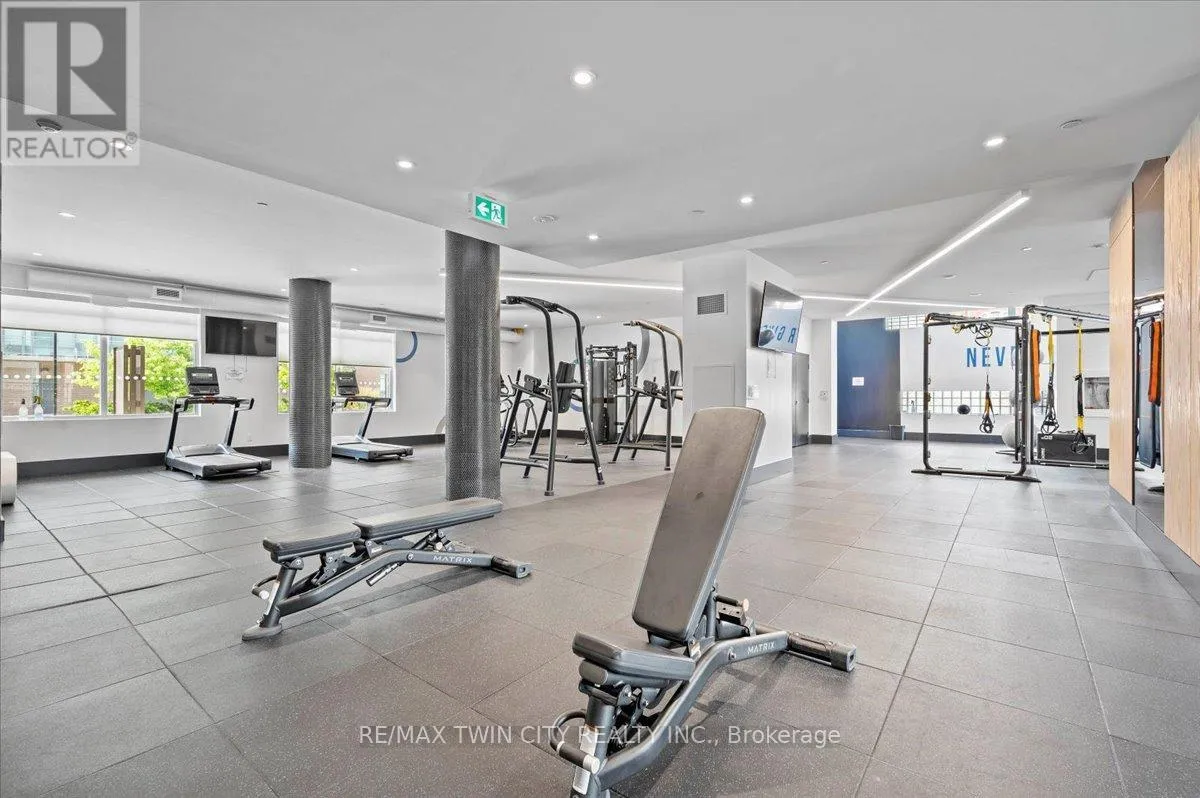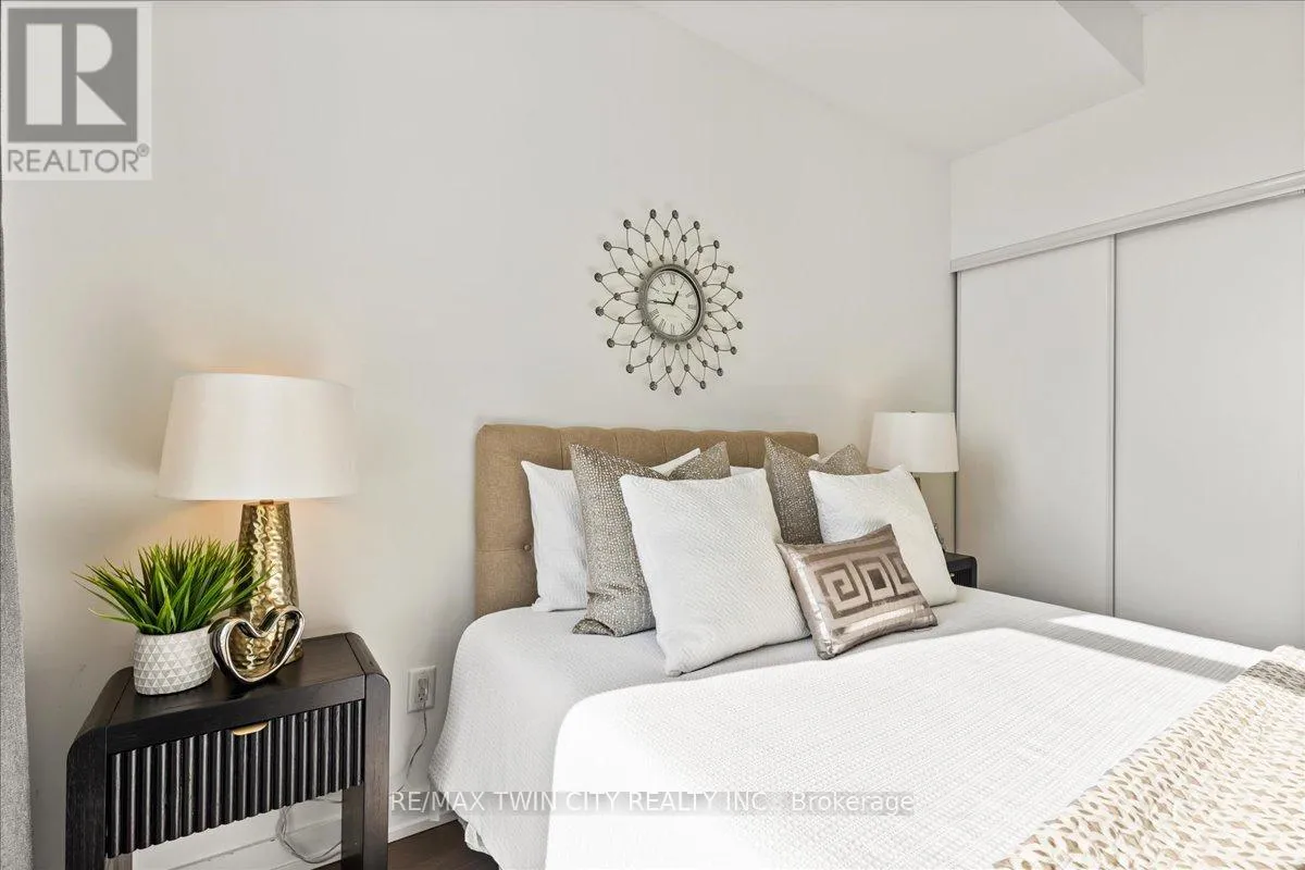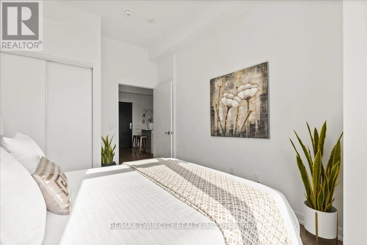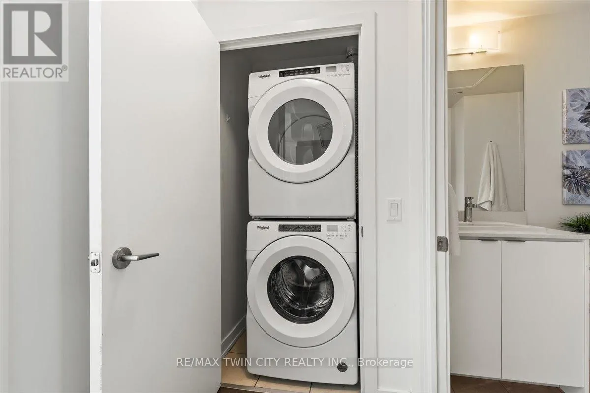 Cross Streets: YOUNG. ** Directions: King St to Victoria to Duke. Elite DTK condo! 505 maximizes utility of the space and achieves a grand feel with the tall ceilings, open concept layout, and unobstructed easterly Kitchener skyline views. This unit sits at the same level as the roof top patio with BBQ access just down the hall. The eat in kitchen with center island, contemporary cabinetry, stainless steel appliances, and quartz countertops is open to the versatile living room space, which sits parallel to the bedroom and both overlook the 204 sq ft private terrace, bringing the total indoor/outdoor size of the unit to 675 sq ft. Click flooring flows throughout the unit. One of the most successfully integrated condo buildings in the downtown core, reconstructing the John Forsyth Shirt Company, Duke Street level façade & capturing the historic landmark while moving the city forward with urban renewal. The building amenities are impressive; a clean and modern lobby with a full-time concierge service, comfortable sitting spaces and open to the ground level state of the art fitness center, complete with heavy bags and exercise bikes surrounded by windows connecting you to the outdoors. Truly unique is your ability to take your fitness journey outside to the 25th floor, roof top running track while you enjoy the stunning 360-degree views. When its time to relax or entertain larger groups, take advantage of the 5th floor, furnished patio and party room, overlooking the Duke Street forecourt. The building also includes car wash station, dog wash station, and artificial turf dog walk. Short walking distance to Victoria park, charming cafés, popular restaurants, boutique shops, and LRT. Downtown Kitchener is changing to become a popular urban center and now is the time to take advantage. Dont miss out (id:27476)