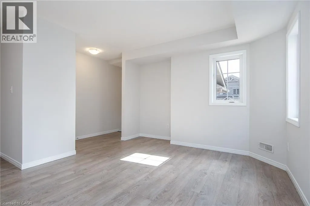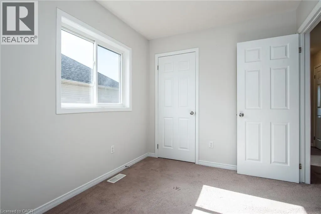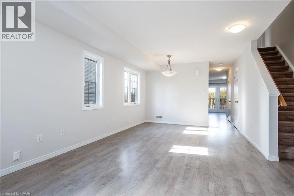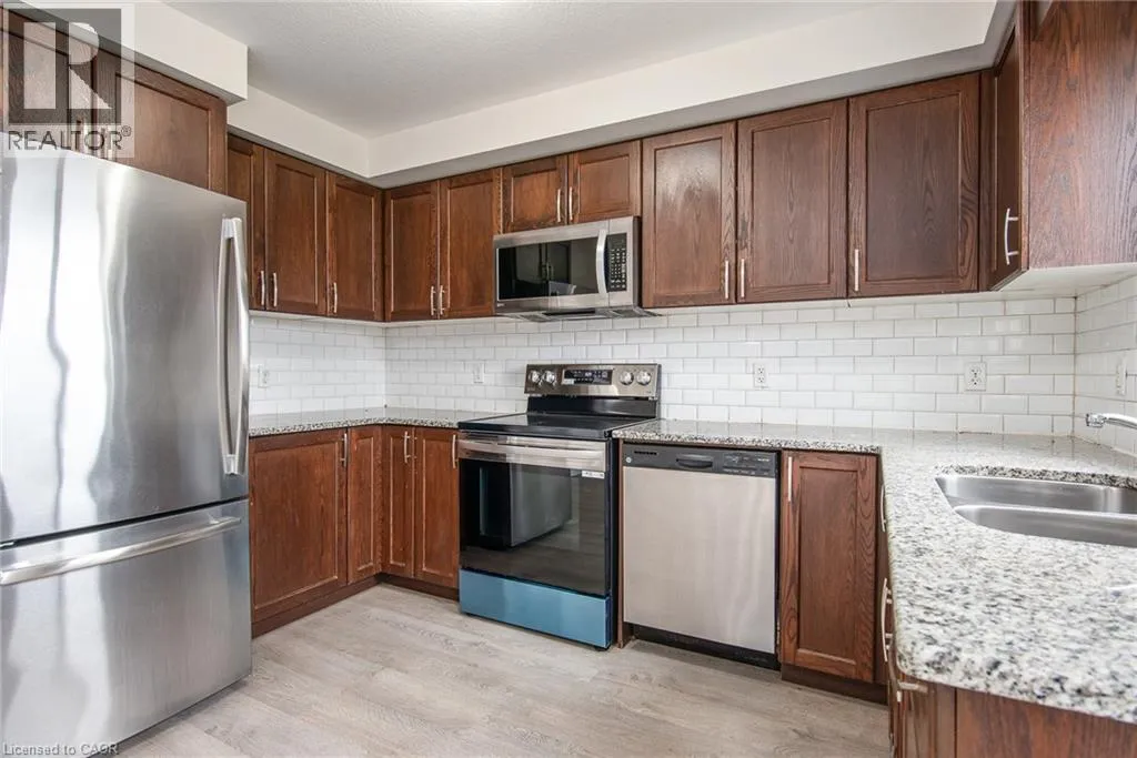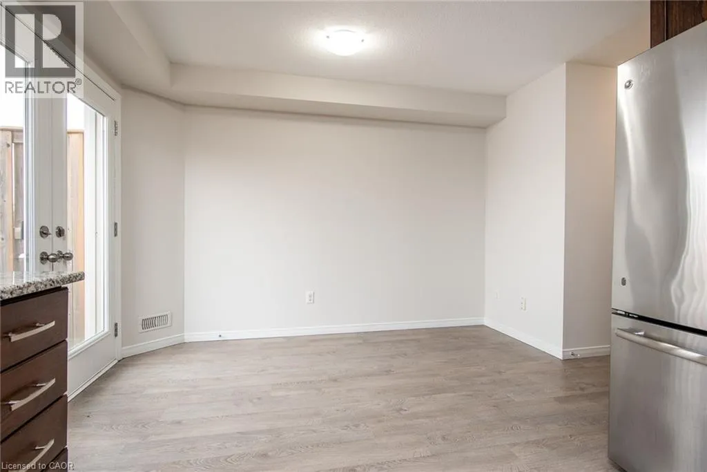 Huron Road to Templewood Dr Welcome to this bright and well-maintained 3-bedroom, 1.5-bath townhome offering 1,457 sq ft of functional living space in a growing Kitchener neighbourhood. The main floor features a spacious front living room with large windows, a convenient powder room, and a modern kitchen with stainless-steel appliances, ample cabinet storage, and generous counter space. The kitchen connects to the dining area, where double French doors open to a private deckâperfect for morning coffee, BBQs, or quiet evenings outdoors. Upstairs, youâll find three comfortable bedrooms and a full 4-piece bathroom. The primary bedroom offers his-and-her closets, and the home includes in-suite laundry and plenty of additional storage. Enjoy dedicated parking at your door, with visitor parking available in the complex. Located steps from playgrounds, sports fields, pickleball courts, Strasburg Creek Natural Area and other scenic walking trails in Kitchen. A brand-new indoor recreation complex is under construction nearby, soon to feature swimming pools, a turf fieldhouse, and fitness facilitiesâadding even more value to this convenient location.The area continues to grow, with new shopping and dining options, along with easy access to schools, public transit, the expressway, and Highway 401. This move-in-ready townhome offers a balance of comfort and everyday convenienceâperfect for families or professionals looking for a welcoming place to call home. (id:27476)