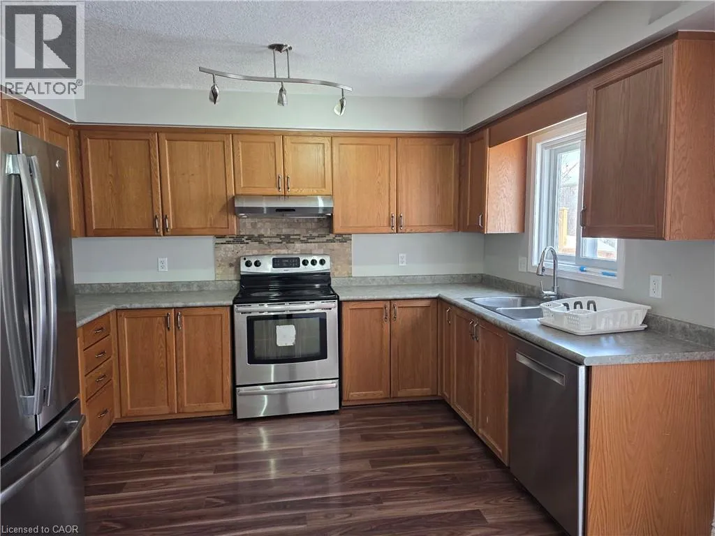 Activa Ave to Snowdrop Stunning 3-Bedroom, 3.5-Bathroom Townhouse in Sought-After Activa Subdivision. Perfectly designed for modern living, this home offers a fully finished basement featuring a spacious family/rec room, a 3-piece bathroom, and convenient direct access from the garage. The main floor boasts an open and functional flow: starting with a welcoming front family room, passing a convenient powder room and main-floor laundry, leading to a generous eat-in kitchen with walkout access to the private rear yard. Enjoy peaceful backyard living with no neighbors directly behind youâcomplete with a raised deck, lower stone patio, and serene forest views for ultimate privacy and tranquility. Upstairs, the large primary bedroom includes a 3-piece ensuite, complemented by a main 4-piece bathroom and two additional well-sized bedrooms. Ideally located in the vibrant Activa community, you're just minutes from top-rated schools, scenic trails, parks, public transit, and quick access to Highways 7/8 and 401âmaking commuting and daily life effortless. This exceptional townhouse combines rare design, thoughtful features, and an unbeatable location. A wonderful place to call home in one of Kitchener-Waterloo's most desirable neighborhoods. (id:27476)