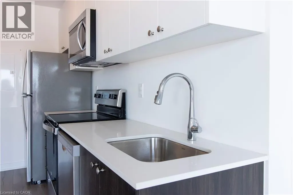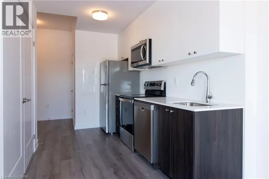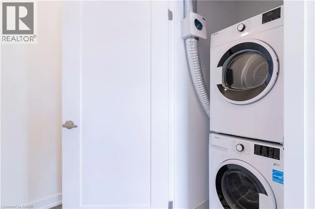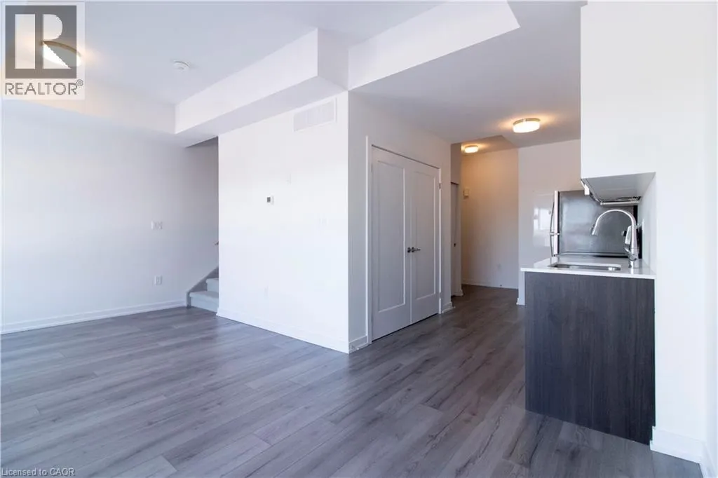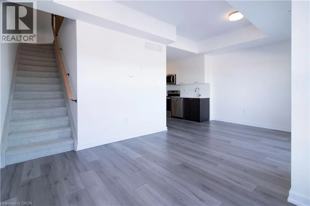 Ottawa St S to Elmsdale to Palace Welcome to this brand new 2-Bed, 2.5 Bath condominium townhome in Kitchener's beautiful Parkside community, where convenience and community intertwine to create a haven for everyday living. Nestled next to this family-centric neighbourhood are the expanses of McLennan Park and Elmsdale Park, offering a tranquil escape or variety of outdoor activities. Within this upper unit, discover a meticulously crafted two-storey space spanning over 1000 square feet. Enjoy the expanse of two generously proportioned bedrooms with two full bathrooms, a powder room on the main level, as well as an ample living room, dining room, kitchen with bathroom on the main level. The two level experience not only enhances privacy, but each level also boasts its own balcony allowing clear views of the hillside at McLennan Park, and allowing ample natural light to flow throughout the unit. Decor package upgrades such as quartz countertops and Whirlpool/Bloomberg appliance package, soft close cabinets, deep fridge upper cabinet with gable, and laminate flooring throughout. Venturing beyond the neighbourhood is effortless, with a two-minute drive to HWY 7/8, granting seamless access for commuters. Should you prefer the convenience of public transit, an onsite stop is just outside your doorstep, ensuring smooth journeys to any destination. Just a 5 minute walk away sits Laurentian Power Centre, boasting an array of amenities to cater to your every need. From a large Zehrs grocery store to home improvement essentials at Lowes, and healthcare services at the walk-in clinic, every convenience is within easy reach. (id:27476)