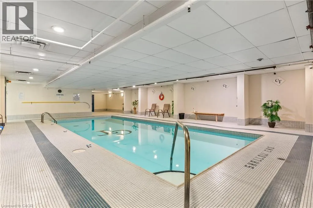 HWY 8 TO KING ST.E. Welcome to the Cameo Building â where comfort, convenience, and community come together in one of the areaâs most sought-after condominiums. This beautifully updated 2-bedroom, 2-bathroom condo offers 1,090 sq. ft. of spacious living in a prime central location. The unit features an updated kitchen with oak cabinets and black appliances, a combination of oak hardwood flooring and ceramic in the kitchen, owned water heater and a nice and personal private balcony â perfect for enjoying your morning coffee or relaxing outdoors. The spacious primary bedroom features a large walk-in closet with newer carpeting and a private en-suite bath, while the second bedroom offers flexibility for guests, a home office, or additional family members. Enjoy the practical benefits of in-suite laundry with a new stacked washer and dryer, both baths with granite counters, California lighting system in the kitchen, 1 underground parking, and a private locker for extra storage. Enjoy fantastic building amenities including an indoor pool, gym, party room, and plenty of visitor parking. Just minutes from shopping, restaurants, transit, and highway access and Chicopee ski hillâ a perfect choice for downsizers, first-time buyers, or anyone seeking low-maintenance living. Plus, the vibrant community atmosphere makes it truly special, with organized events, card games, and opportunities to connect with neighbors. (id:27476)