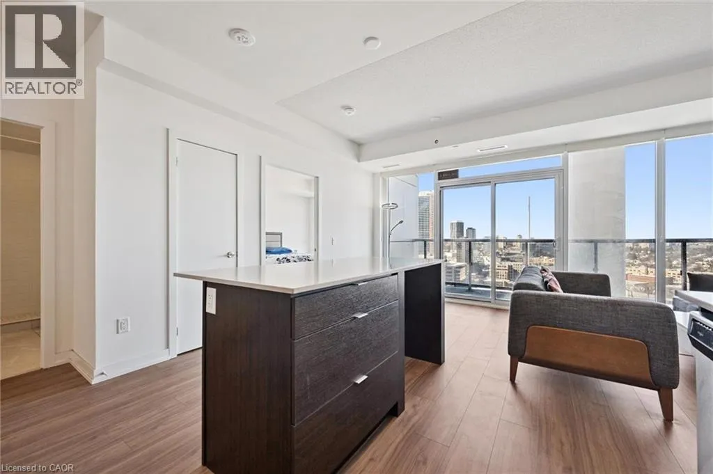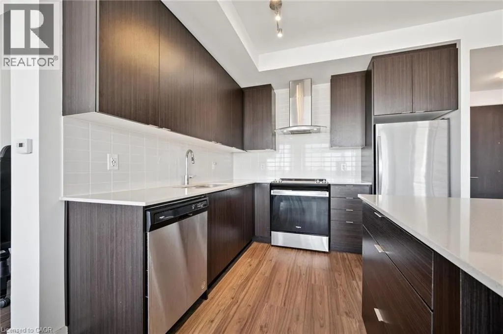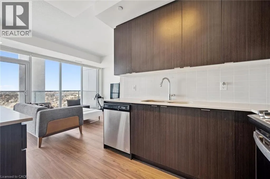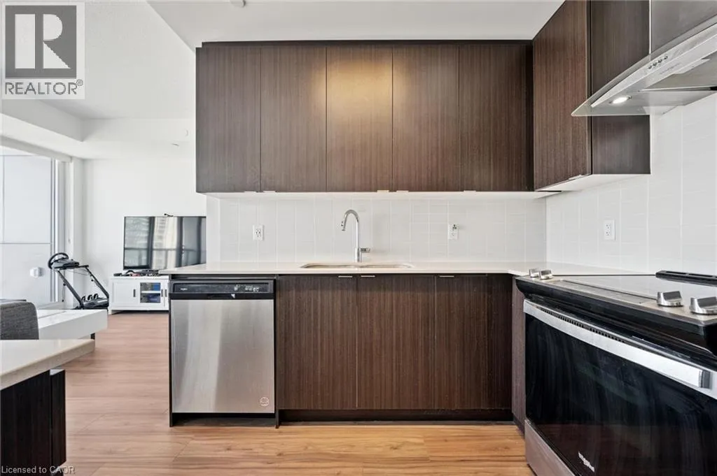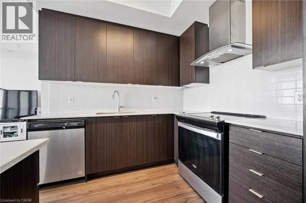 This 1 bedroom plus den condo is located in the bustling downtown area, offering a modern and stylish living space. As you step into the unit, you are greeted by a spacious open-concept living room and kitchen area, which is perfect for entertaining guests or relaxing after a long day. The kitchen features high-end stainless steel appliances, a kitchen island, and a sleek backsplash. The countertop provides ample space for meal preparation and doubles as a breakfast bar for quick meals. The bedroom is spacious and features large windows, which provide plenty of natural light and a stunning view of the city skyline. This unit features electric motorized blinds on all windows. The den can be used as a home office, or additional storage space, adding to the flexibility and functionality of the unit. The bathroom is elegantly designed with modern fixtures, a vanity sink, and a full-size bathtub. Other amenities include exclusive storage locker and parking, in-unit laundry, central air conditioning and heating, and a private balcony that provides a breathtaking view of the city. The building offers additional amenities, such as a fitness centre, a rooftop terrace, a walking/running track on the rooftop and 24-hour security, ensuring safety and convenience. This 1 bedroom plus den condo is perfect for those who want to experience the urban lifestyle with easy access to restaurants, cafes, shopping, and entertainment options that downtown has to offer. It is ideal for young professionals, couples, investors or small families who are looking for a comfortable and convenient living space in the heart of the city. (id:27476)