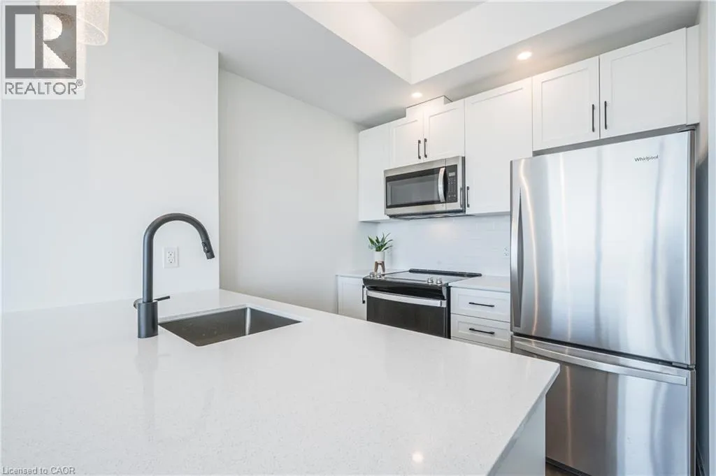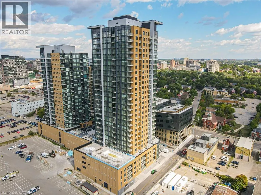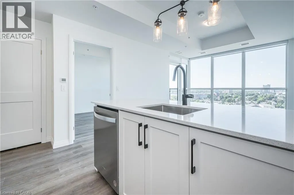 Garment & Victoria HIGHLY SOUGHT-AFTER GARMENT CONDOS! AVAILABLE APR. 1ST! This one bed, one bath includes a NOOK FOR OFFICE SPACE and TONS of upgrades! The kitchen features bright white cabinets, clean lines, premium pendant lighting and breakfast bar. The unit also features upscale flooring, a great sized bedroom with ceiling to floor windows and large walk-in closet, a 4pc bathroom, in-suite laundry, balcony with soaring views, and one underground parking space. The building offers some of the best amenities a building offers in Downtown Kitchener: rooftop pool, fitness room, party room, relaxation area, yoga spot, pet run, urban park, sport court - it's no wonder this is the place to be! Located steps to downtown Kitchener, Google, KPMG, Deloitte, future LRT hub, Go Train, D2L, Communitech, School of Pharmacy, School of Medicine, Victoria Park, shops, restaurants, entertainment and so much more! Base internet included in condo fees. (id:27476)