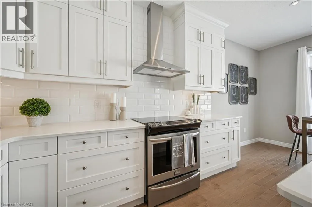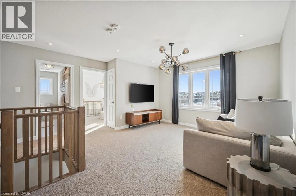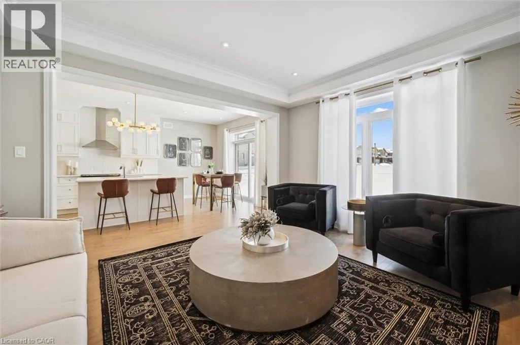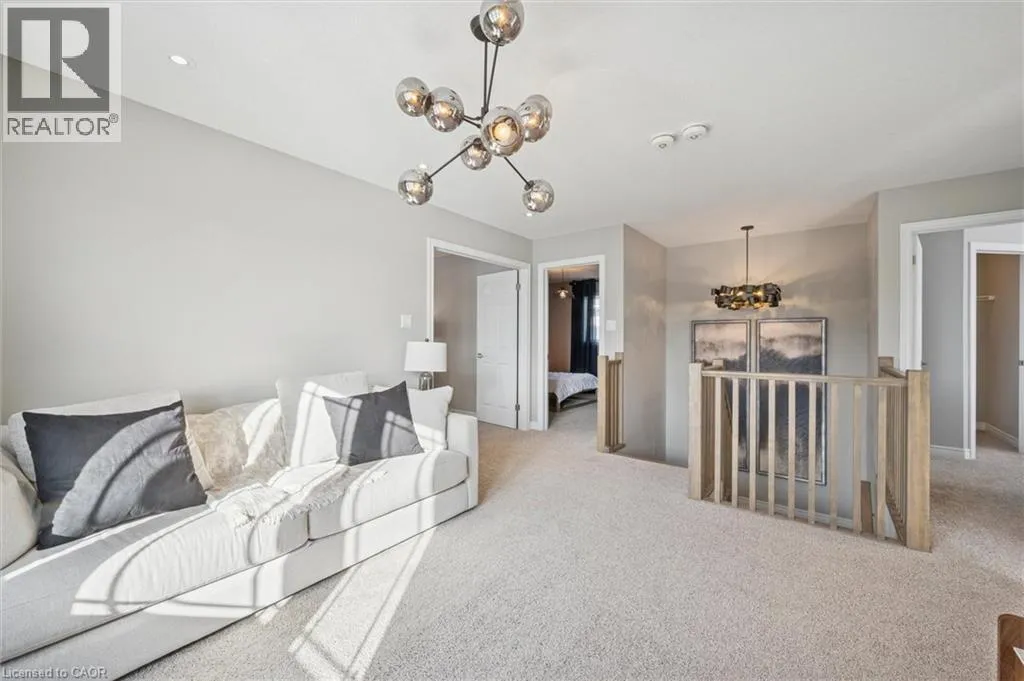 Welcome to 97 Rivertrail Avenue, an exceptional Fusion Homes residence nestled in one of Kitchenerâs most desirable family-oriented communities. Thoughtfully designed and meticulously finished, this elegant detached home showcases Fusionâs renowned craftsmanship, attention to detail, and commitment to quality. The open-concept main level is both sophisticated and functional, featuring premium flooring, oversized windows that flood the space with natural light, and a beautifully appointed chef-inspired kitchen complete with custom cabinetry, quartz countertops, a large centre island with seating, and refined designer finishesâperfect for entertaining and everyday living alike. The upper level offers a well-planned layout highlighted by a luxurious primary suite with a walk-in closet and spa-like ensuite, creating a serene private retreat. Additional bedrooms are generously sized and thoughtfully finished, complemented by a full bath and the convenience of upper-level laundry. The lower level provides excellent future potential, offering flexible space ideal for a recreation room, home office, gym, or additional living areaâallowing the home to grow with your needs. Move-in ready and beautifully curated, 97 Rivertrail Avenue delivers the perfect blend of modern design, comfort, and enduring valueâbacked by Fusion Homesâ exceptional build standardsâall within close proximity to parks, trails, schools, and everyday amenities. (id:27476)