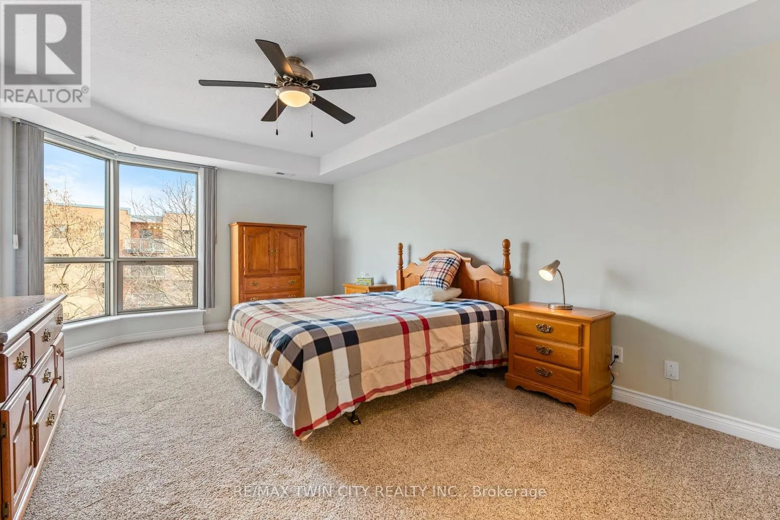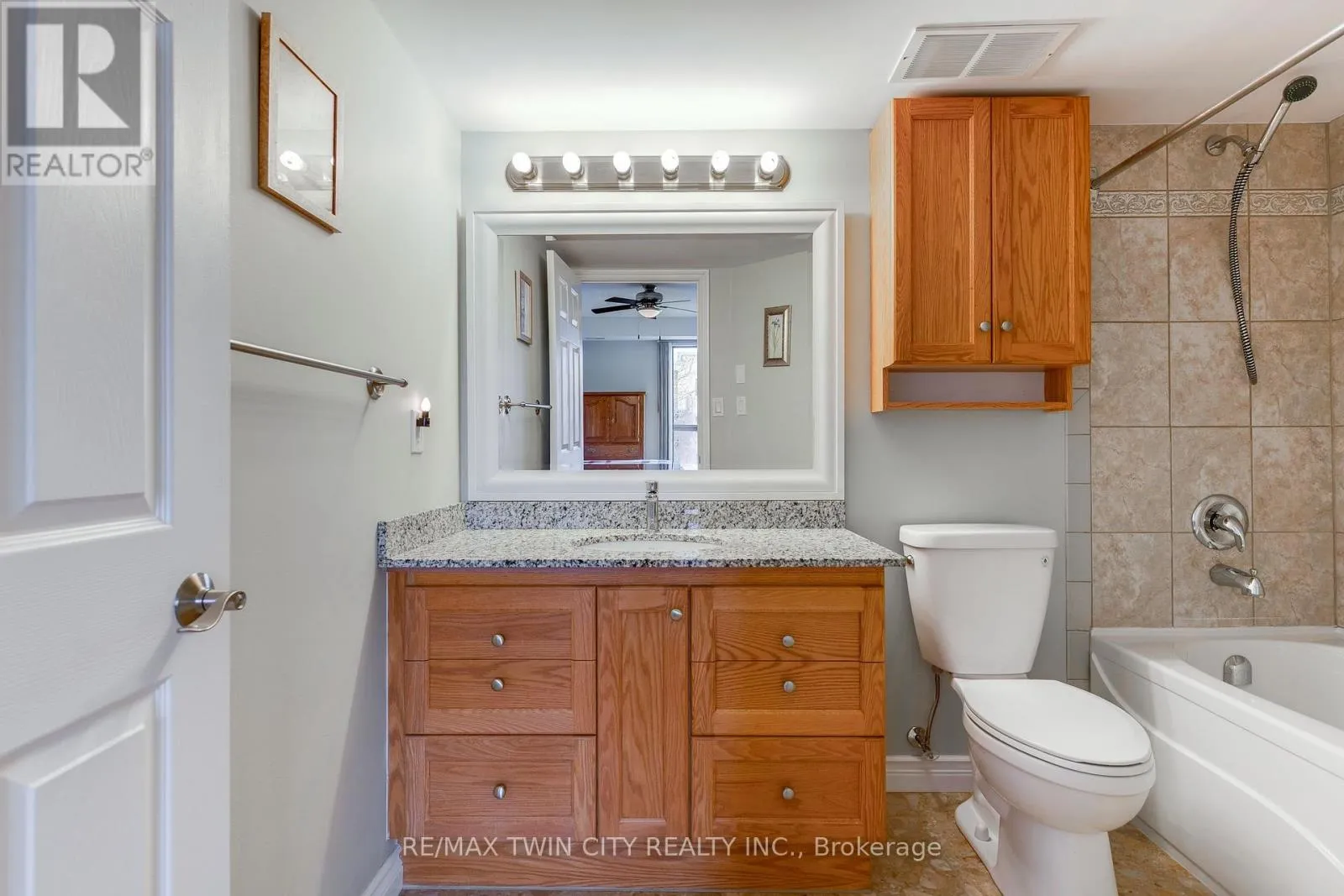 Cross Streets: RIVER RD. E. ** Directions: HWY 8 TO KING ST. E. Welcome to the Cameo Building - where comfort, convenience, and community come together in one of the area's most sought-after condominiums. This beautifully updated 2-bedroom, 2-bathroom condo offers 1,090 sq. ft. of spacious living in a prime central location. The unit features an updated kitchen with oak cabinets and black appliances, a combination of oak hardwood flooring and ceramic in the kitchen, owned water heater and a nice and personal private balcony - perfect for enjoying your morning coffee or relaxing outdoors. The spacious primary bedroom features a large walk-in closet with newer carpeting and a private en-suite bath, while the second bedroom offers flexibility for guests, a home office, or additional family members. Enjoy the practical benefits of in-suite laundry with a new stacked washer and dryer, both baths with granite counters, California lighting system in the kitchen, 1 underground parking, and a private locker for extra storage. Enjoy fantastic building amenities including an indoor pool, gym, party room, and plenty of visitor parking. Just minutes from shopping, restaurants, transit, and highway access and Chicopee ski hill- a perfect choice for downsizers, first-time buyers, or anyone seeking low-maintenance living. Plus, the vibrant community atmosphere makes it truly special, with organized events, card games, and opportunities to connect with neighbors. (id:27476)