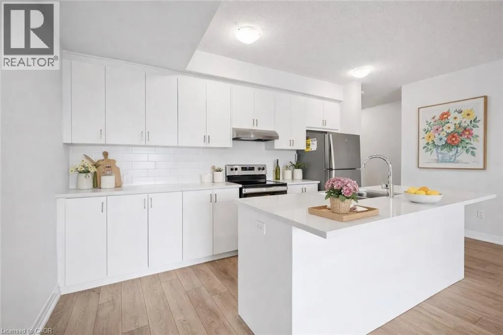TRUSSLER RD. TO BENNINGER DR. BIG SAVINGS â FIRST MONTH FREE RENT ON A 13-MONTH LEASE! TWO PARKING SPOTS AVAILABLE. New tenants receive exclusive discounts on Rogers TV, internet and mobile services. BRAND NEW ENERGY STAR® CERTIFIED two and three bedroom stacked townhomes near Sunrise Shopping Centre with flexible move-in. Reserve your favourite unit today and move in anytime from now through Spring 2026. Welcome to THE OKANAGAN, a 2 bed, 2.5 bath suite with high ceilings, premium finishes, and a bright open concept layout. The brand new kitchen boast quartz countertops, subway tile backsplash, full-size stainless steel appliances, and an oversized island with breakfast bar seating. Enjoy the convenience of in-suite laundry and central air conditioning/heat for year round comfort. Enjoy two private balconiesâone off the living room and one off the master bedroom, offering beautiful views of the pond and countryside. Just steps away, Trussler Woods features peaceful trailsâperfect for walking, jogging, and enjoying the outdoors. EV chargers and visitor parking available. Pet-friendly community. Located in a designated school bus zone, offering added convenience for families. Enjoy quick access to Highways 7/8 and 401. Actual units may vary in layout; interior finishes are consistent. Some photos may be virtually staged. Tenants pay utilities. Landlord is responsible for furnace filter replacements and water softener maintenance. Book a tour to explore all available suites! (id:27476)
