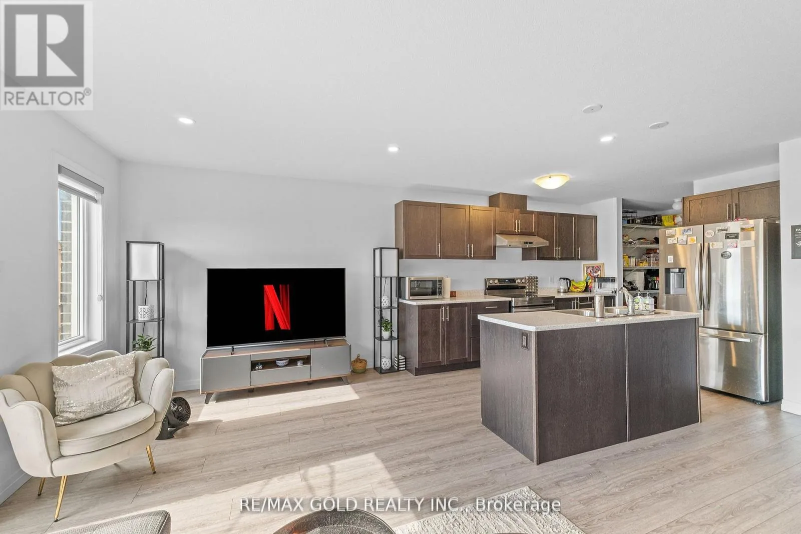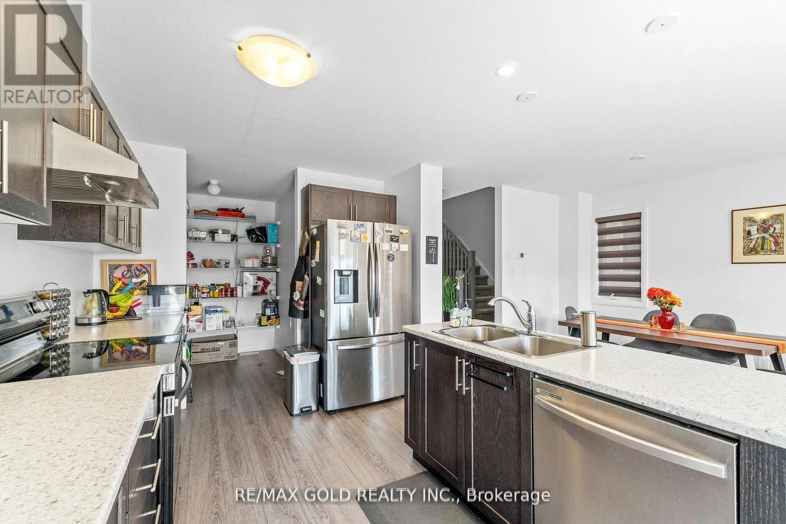 Fisher-Hallman RD and Huron Rd Stunning end-unit townhouse offering over 1,700 sq ft of beautifully designed living space that perfectly blends comfort, style, and functionality. The main floor features an open-concept layout with a spacious living and dining area adorned with zebra curtains, creating a warm and inviting atmosphere for both everyday living and entertaining guests. The upgraded kitchen showcases high-end stainless steel appliances, elegant cabinetry, a large pantry for extra storage, and a modern layout ideal for any home chef. Upstairs, you'll find three generous bedrooms, including two with walk-in closets and a luxurious master suite with a private3-pieceensuite. The large windows throughout the home allow plenty of natural light, enhancing the bright and airy feel. The unfinished walkout basement provides ample storage space and opens directly to school grounds, offering a peaceful and scenic view with no rear neighbors. Located in a highly desirable area, this home is within walking distance to schools, plazas, and a community center, while being just minutes from parks, trails, and St. Mary's General Hospital. With excellent transit access only an 8-minute walk to the nearest bus stop and situated in a rapidly growing community, this property offers the perfect combination of modern living, convenience, and future value. (id:27476)