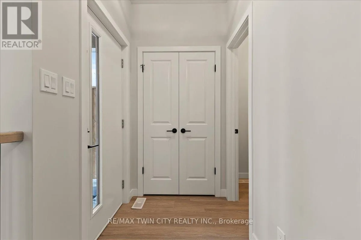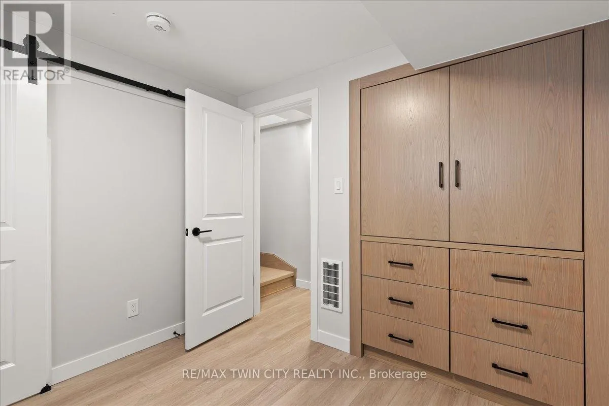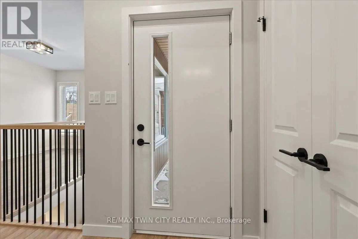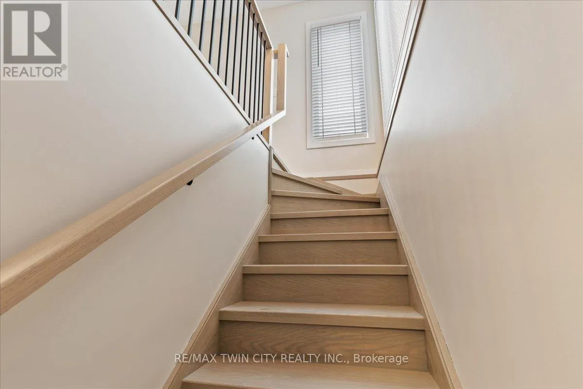 Cross Streets: Erinbrook Drive. ** Directions: Bleams to Thistledown, left onto Erinbrook. Driveway is on Erinbrook. Beautiful rental! This energy efficient and modern compact unit offers luxury finishes comparable to a custom home. At 860 square feet and offering 2 bedrooms, 1.5 bathrooms, this unit comes with large main floor windows, 9' ceilings and a wide open layout making for a bright space. The living room, kitchen, and powder room all occupy the main floor. The two-tone kitchen is a combination of a white oak finish with satin grey floor to ceiling cabinets and soft close mechanisms along with quartz countertops throughout the kitchen and bathrooms. Brand new stainless steel kitchen appliances and stackable laundry washer and dryer. The black hardware contrasts the white trim and matches the black plumbing fixtures throughout. LVP flooring in the entire unit matches the oak staircase and iron spindles leading to the basement. Two bedrooms; one with built in drawers, a laundry, and a four-piece bathroom make up the lower level. Conveniently Country Hill location! (id:27476)