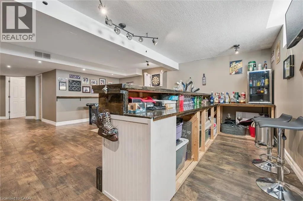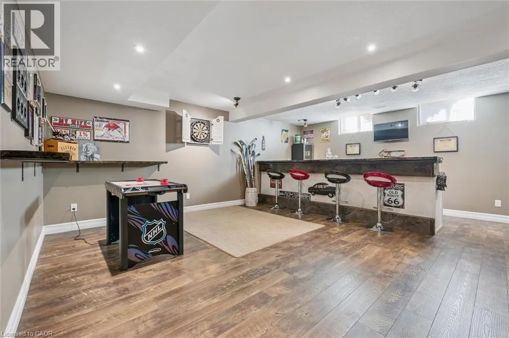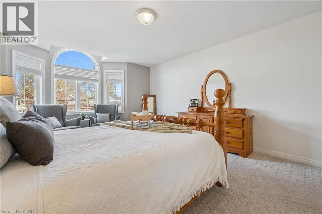Caryndale Dr to Heartwood to Heartbridge St Welcome to Your Dream Home in Doon! This stunning family home offers over 3,500 sq. ft. of finished living space in one of Kitchenerâs most desirable neighbourhoods. Backing onto serene green space, this 4+1 bedroom, 4-bath home combines luxury, comfort, and functionality. The main level features a spacious layout with a formal dining room, a bright living area, and a cozy family room perfect for relaxing evenings. The eat-in kitchen offers ample cabinetry, a large island, and a walkout to a deck with a built-in pergola, ideal for entertaining or enjoying quiet mornings surrounded by nature. A convenient laundry room with garage access completes this level. Upstairs, youâll find four generously sized bedrooms, including a primary suite with a walk-in closet and a 4-piece ensuite bath. The fully finished basement extends your living space with a rec room featuring a fireplace, a dry bar, an additional bedroom, and a 3-piece bathroomâ perfect for guests or an in-law setup. Located in the sought-after Doon community, this home is close to top-rated schools, scenic trails, shopping, and quick highway access â the perfect balance of tranquility and convenience.Carpet (2018),Roof (2018), windows (2019), basement (2014), water softener (2012) (id:27476)