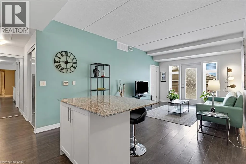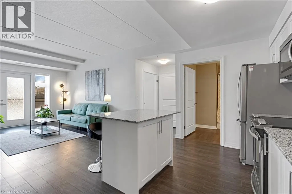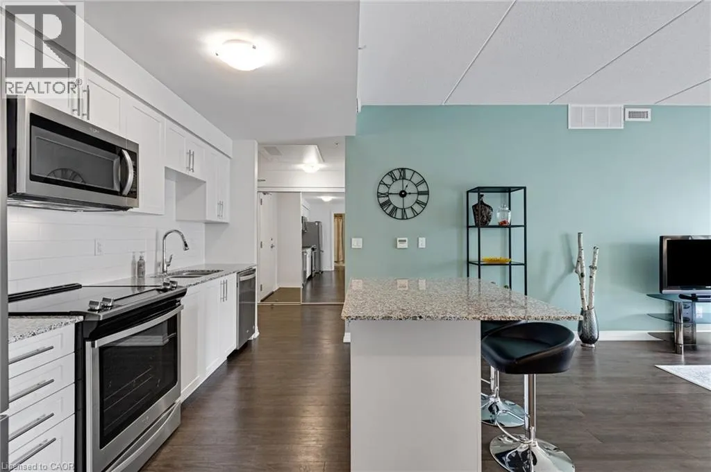 Welcome to this modern, sun-filled condo offering a stylish open-concept living and kitchen design with expansive windows that flood the space with natural light. This newer building features upgraded finishes throughout, including engineered hardwood flooring, quartz countertops, stainless steel appliances, and a built-in microwave for a sleek, contemporary feel. The spacious primary bedroom includes a large closet and a private en-suite bathroom, providing both comfort and functionality. A Juliette balcony adds charm and allows fresh air and natural light to flow throughout the unit. The second bedroom can be used as a bedroom or an office. The condo includes one parking space and access to excellent building amenities, including a fully equipped fitness centre and a party/meeting room, ideal for entertaining or working from home. Ideally located close to major highways, GoodLife Fitness, Sobeys, restaurants, shopping, parks, and everyday conveniencesâthis is an exceptional opportunity for a professional tenant seeking comfort, convenience, and a modern lifestyle. Some furniture can be left if desired by the tenant.- This unit is BARRIER-FREE COMPLIANT (id:27476)