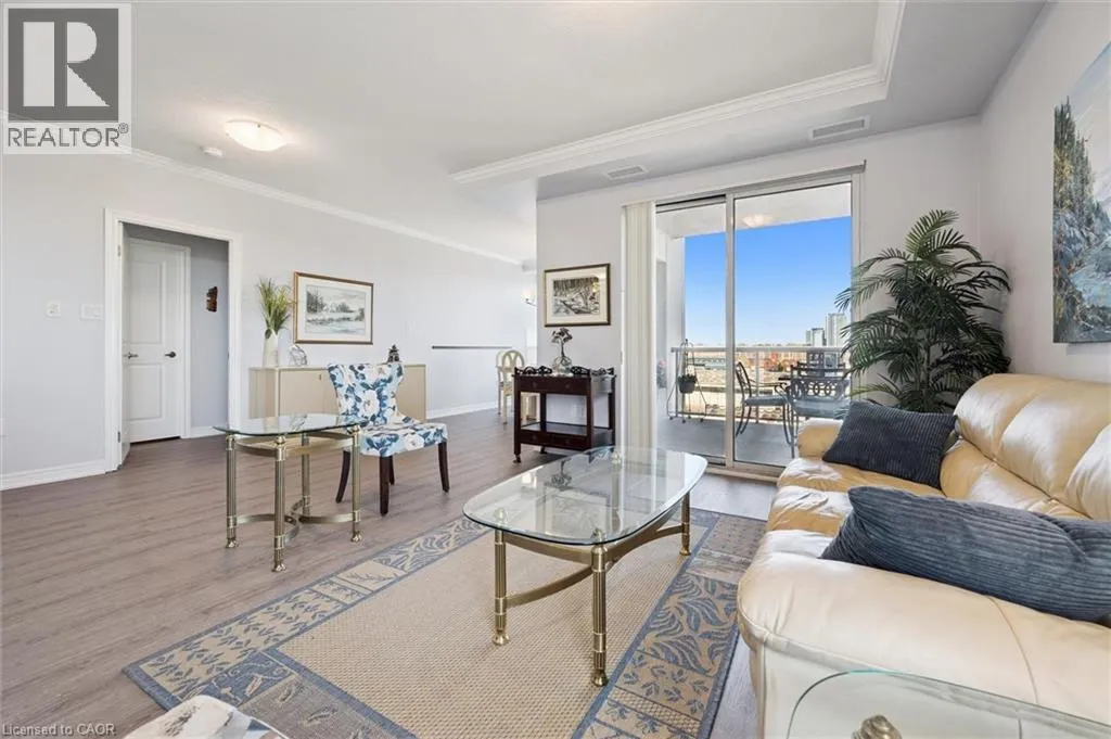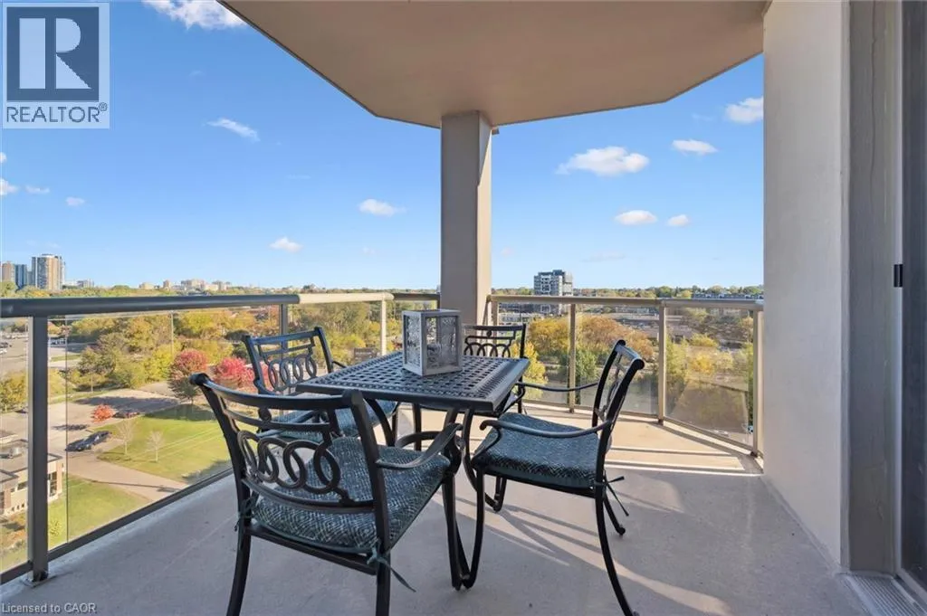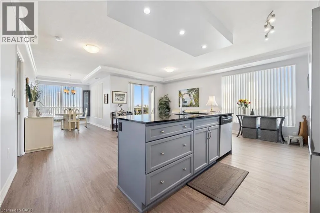 BELMONT AVE BETWEEN GAGE AVE AND GLASGOW STREET Come and experience care-free living in Belmont Village Condominiums, a beautiful and very well-kept building. Unit 809 offers a spacious, open-concept kitchen/dining room/living room layout with updated luxury wide-plank flooring in the main living space as well as both bedrooms. Step inside the unit and appreciate the built-in cabinetry and large coat closet as well as ceramic tile flooring in the entryway, laundry room and both bathrooms. Freshly painted throughout, this unit shows so well and is truly move-in ready. The laundry room has a newer stackable washer/dryer set (2024) plus room for a second fridge and storage space. The white kitchen has new stainless fridge, stove and microwave, granite counters, an island with extra space, and plenty of storage. This corner unit is bright with lots of natural light and 180 degree views of the city. The balcony is east-facing providing a view of the morning sunrise, and covered afternoon shade - perfect for relaxing anytime of day. The large primary bedroom has a walk-in closet and ensuite bathroom with double sinks and step-in shower. A second bedroom doubles as a den and guest space. One underground parking space that is close to the building entrance plus lots of visitor parking outside. Building amenities include: party room, media room, exercise room, games room, guest suite, community BBQ on the patio. Condo fees include heat, air conditioning and water. Centrally located and walkable to all the shops and restaurants in Belmont Village, the Iron Horse trail, and quick access to Uptown Waterloo or Downtown Kitchener. (id:27476)
