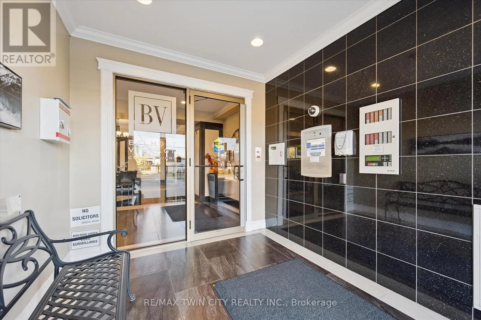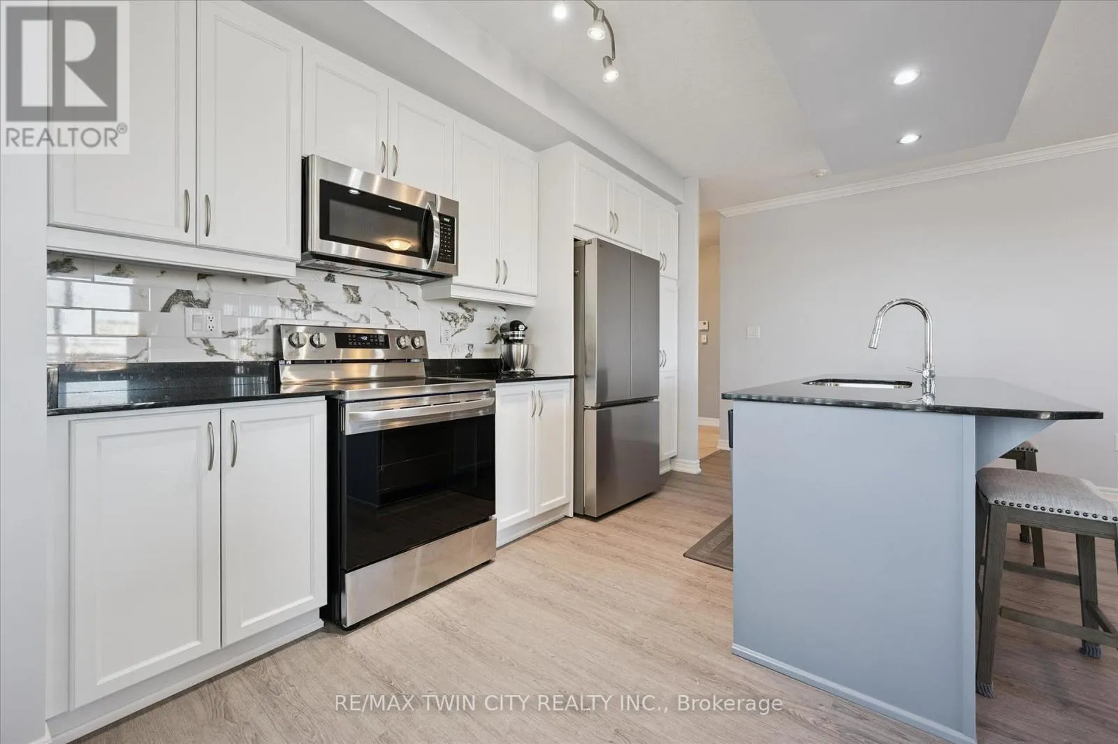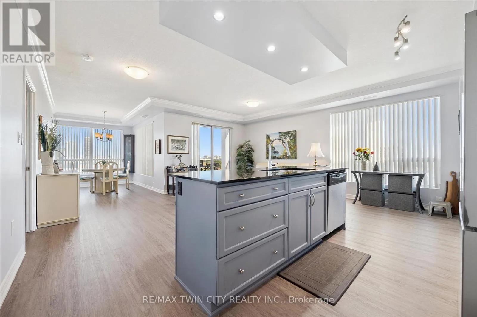 Cross Streets: Gage and Glasgow. ** Directions: Belmont Ave between Gage and Glasgow. Come and experience care-free living in Belmont Village Condominiums, a beautiful and very well-kept building. Unit 809 offers a spacious, open-concept kitchen/dining room/living room layout with updated luxury wide-plank flooring in the main living space as well as both bedrooms. Step inside the unit and appreciate the built-in cabinetry and large coat closet as well as ceramic tile flooring in the entryway, laundry room and both bathrooms. Freshly painted throughout, this unit shows so well and is truly move-in ready. The laundry room has a newer stackable washer/dryer set (2024) plus room for a second fridge and storage space. The white kitchen has newer stainless fridge, stove and microwave, granite counters, an island with extra prep space, and plenty of storage. This corner unit is bright with lots of natural light and 180 degree views of the city. The balcony is east-facing providing a view of the morning sunrise, as well as covered afternoon shade - perfect for relaxing anytime of day. The large primary bedroom has a walk-in closet and ensuite bathroom with double sinks and walk-in shower. A second bedroom doubles as a den and guest space. One underground parking space that is close to the building entrance plus lots of visitor parking outside. Building amenities include: party/games room, media room, exercise room, guest suite, community BBQ on the patio. Condo fees include: heat, air conditioning, and water. Centrally located and walkable to all the shops and restaurants in Belmont Village, the Iron Horse Trail, and quick access to Uptown Waterloo or Downtown Kitchener. (id:27476)