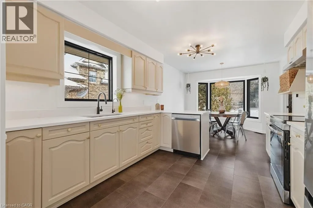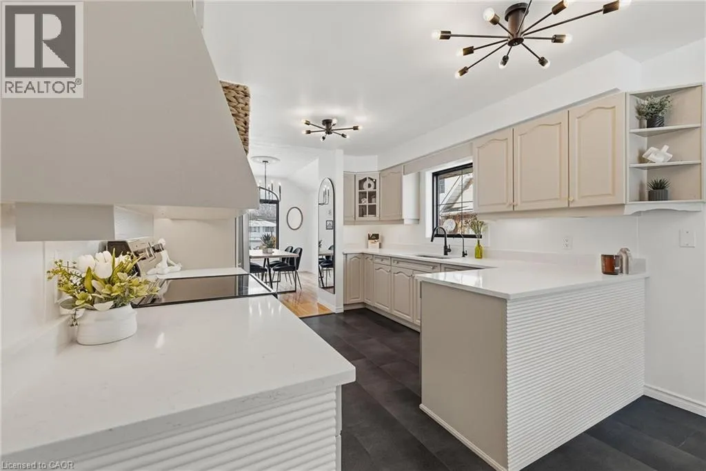 Fischer-Hallman Rd & Forst Hill Dr Welcome to 523 Forest Hill Dr â a fully renovated, light-filled bungalow nestled on one of the most generous lots in the city, right in the heart of Kitchenerâs Forest Hill neighbourhood. With 65x204 ft of property, mature trees, and no rear neighbours, this is a rare opportunity to enjoy privacy, space, and convenience all in one place. Set on a quiet, family-friendly street, this home backs onto one of Kitchener-Waterlooâs top-rated Catholic schools, making it possible for kids to walk to class without crossing a single street. With incredible proximity to more schools, parks, trails, shopping, and cafés, this address offers a connected lifestyle just 5 minutes to downtown Kitchener and 8 minutes to Uptown Waterloo. Commuters will love the easy access to the highway, without the noise. A striking fiberglass front door sets the tone for the elegance inside, opening to a large, open foyer with new tile flooring, warm hardwood accents, and modern light fixtures throughout. This home has been thoughtfully updated, including all-new black-trim windows and doors, brand-new appliances, a refreshed kitchen with stone countertops, and a blend of classic charm and modern style. Vaulted ceilings elevate the dining area, while unique ceiling textures add character. Downstairs, the fully finished basement is bright, spacious, and ready to entertain with a dry bar, cozy gas fireplace, den, and a full 3-piece bathroom, perfect for guests or growing families. A new AC system ensures year-round comfort. With its ideal location, generous lot, upscale updates, and serene setting, 523 Forest Hill Dr offers an unbeatable combination of lifestyle, luxury, and livability in the heart of the city. (id:27476)