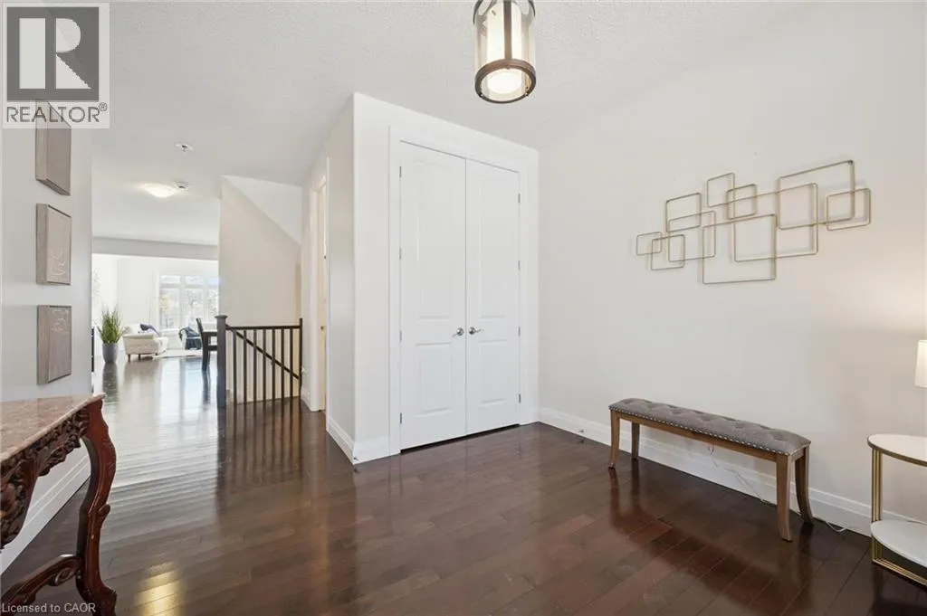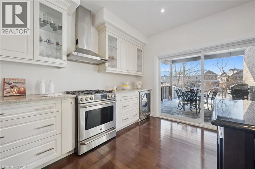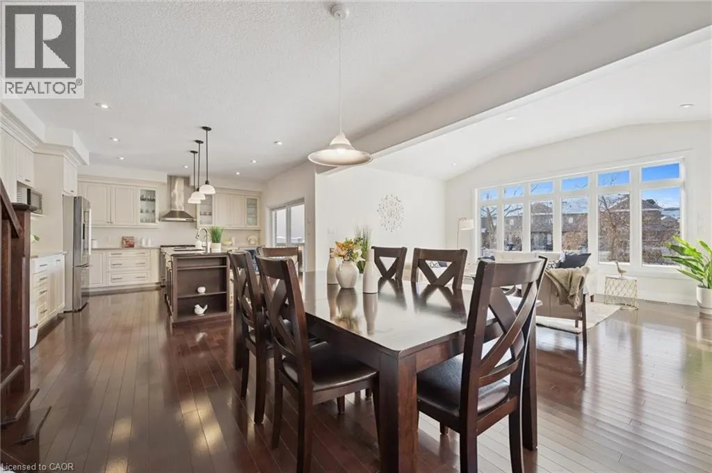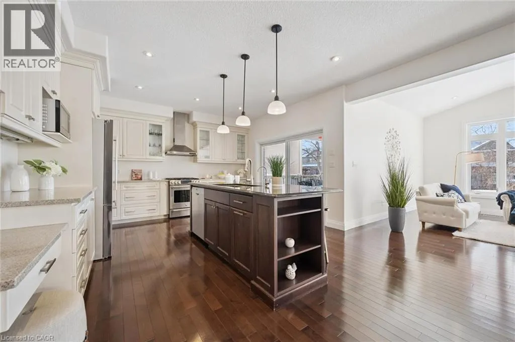 Thomas Slee Dr to Netherwood Cres Prepare to be impressed by this exceptional executive home in the heart of Doon South - uniquely positioned on a quiet, family-friendly crescent and backing onto serene greenspace with no rear neighbours. Offering over 3,750 sq. ft. of beautifully finished living space, this 5-bedroom, 4-bathroom residence exudes modern elegance. A welcoming foyer with custom millwork sets the tone as you enter. The bright, open-concept main floor features 9-foot ceilings, pot lights, luxury flooring, and expansive windows flooding natural light through the space. At the heart of the home is a gourmet kitchen, complete with quartz countertops, stylish backsplash, under-cabinet and pendant lighting, a large breakfast bar, and a walk-in pantry. The kitchen flows seamlessly into the dining area and the stunning great room, where vaulted ceilings and a gas fireplace create a warm yet sophisticated gathering space. Step outside to a covered back porch overlooking the fully fenced, landscaped yard with mature trees - an ideal setting for relaxing or entertaining year-round. Upstairs, youâll find three generously sized bedrooms, including a luxurious primary retreat with a spacious walk-in closet and spa-inspired ensuite featuring dual sinks, custom cabinetry, and a tiled glass shower. A spacious family room, full main bath and convenient upper-level laundry room ensure optimal functionality for the second floor. The recently finished basement adds incredible versatility, showcasing a large recreation room with a full stylish kitchen, 2 large bedrooms and a sleek 3-piece bath. With direct walkout to side entrance there is great potential for an in-law suite or fully duplexed income-generating dwelling. Additional highlights include a freshly painted throughout, central air, water softener, two sets of appliances (most of which are brand new). Located just minutes from top-rated schools, parks, walking trails, shopping, restaurants, Conestoga College, golf courses, and quick 401 access. (id:27476)
