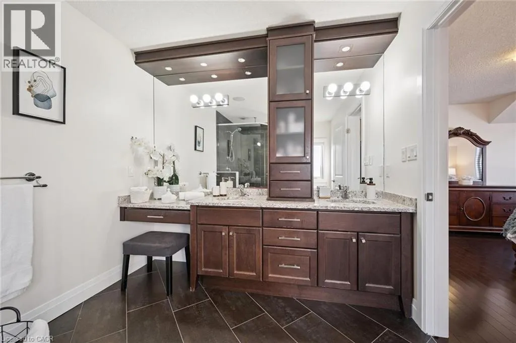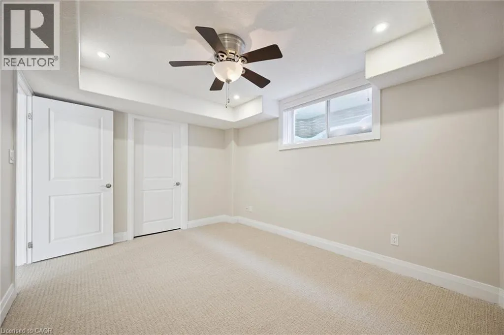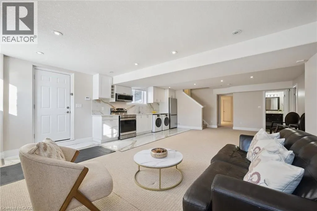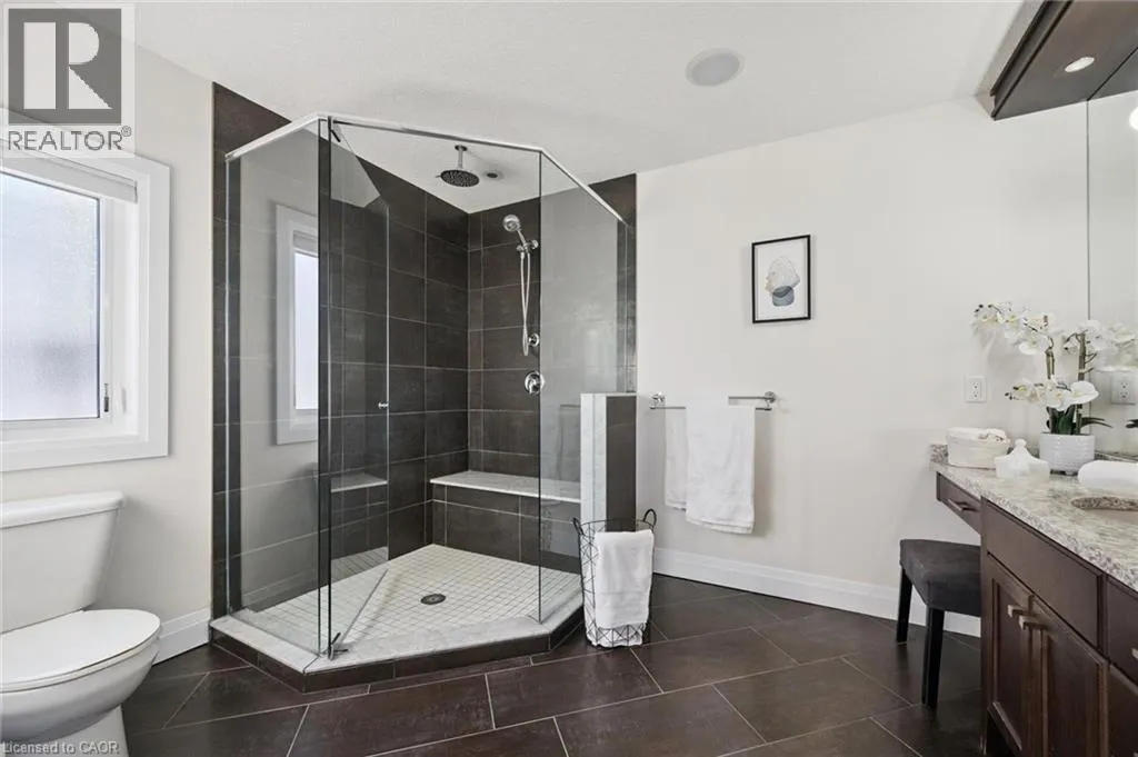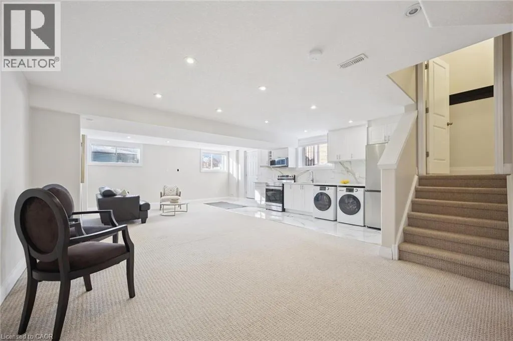 Thomas Slee Dr to Netherwood Cres Prepare to be impressed by this exceptional executive home in the heart of Doon South - uniquely positioned on a quiet, family-friendly crescent and backing onto serene greenspace with no rear neighbours. Offering over 3,750 sq. ft. of beautifully finished living space, this 5-bedroom, 4-bathroom residence exudes modern elegance. A welcoming foyer with custom millwork sets the tone as you enter. The bright, open-concept main floor features 9-foot ceilings, pot lights, luxury flooring, and expansive windows flooding natural light through the space. At the heart of the home is a gourmet kitchen, complete with quartz countertops, stylish backsplash, under-cabinet and pendant lighting, a large breakfast bar, and a walk-in pantry. The kitchen flows seamlessly into the dining area and the stunning great room, where vaulted ceilings and a gas fireplace create a warm yet sophisticated gathering space. Step outside to a covered back porch overlooking the fully fenced, landscaped yard with mature trees - an ideal setting for relaxing or entertaining year-round. Upstairs, youâll find three generously sized bedrooms, including a luxurious primary retreat with a spacious walk-in closet and spa-inspired ensuite featuring dual sinks, custom cabinetry, and a tiled glass shower. A spacious family room, full main bath and convenient upper-level laundry room ensure optimal functionality for the second floor. The recently finished basement adds incredible versatility, showcasing a large recreation room with a full stylish kitchen, 2 large bedrooms and a sleek 3-piece bath. With direct walkout to side entrance there is great potential for an in-law suite or fully duplexed income-generating dwelling. Additional highlights include a freshly painted throughout, central air, water softener, two sets of appliances (most of which are brand new). Located just minutes from top-rated schools, parks, walking trails, shopping, restaurants, Conestoga College, golf courses, and quick 401 access. (id:27476)