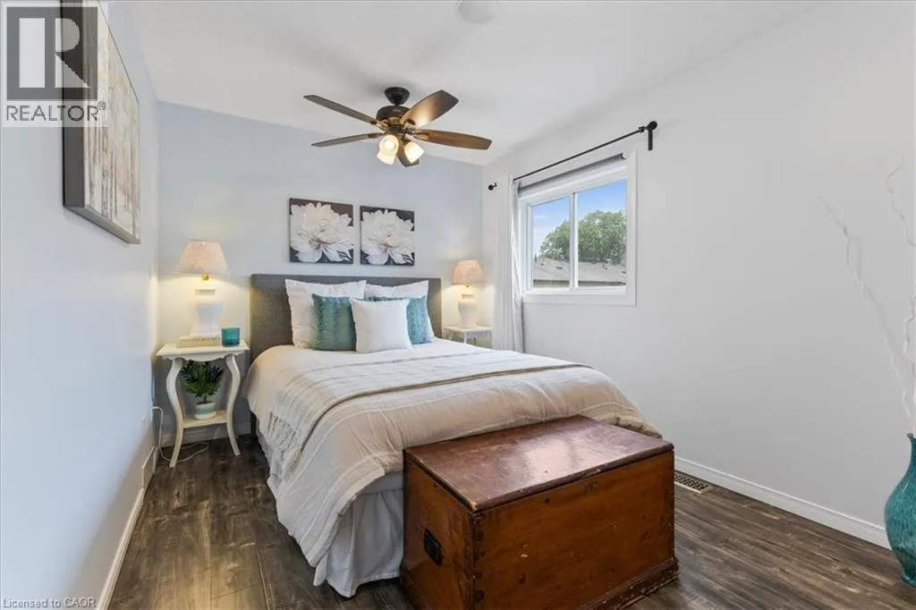 River & Kinzie This well-maintained end-unit condo townhouse offers exceptional value in a quiet, family-friendly complex with low monthly condo fees! Enjoy a bright, carpet-free layout with a walkout to your private patio and fully fenced backyard, ideal for morning coffee, your fur baby or entertaining. Upstairs offers two generous bedrooms and a 4-piece while the finished lower level provides extra space for home office, gym space and additional storage. Prime Location!! Tucked in a quiet, green setting with trails and parks nearby and just minutes from Chicopee Ski Hill, shopping, schools, public transit, the expressway & Highway 401. Whether youâre getting into the market, downsizing or adding to your investment portfolio, this unit is move-in ready!! Book your private showing today! (id:27476)