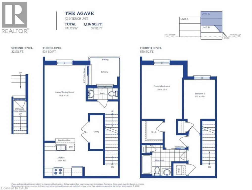 QUEEN STREET S VIVAâTHE BRIGHTEST ADDITION TO DOWNTOWN KITCHENER **For a limited time, exclusive pre-construction incentives make this opportunity even more exciting. Choose to receive a $15,000 parking space at no cost, or select any 3 incentives totaling $15,000 in value, including $5,000 decorating dollars, $5,000 in upgrades (where applicable), a $5,000 furnishings package, closing costs covered up to $5,000, an upgraded $5,000 appliance package in addition to the standard appliances, one or two years of no condo fees depending on the unit selected, and zero occupancy fees already included.** In this exclusive community located on Mill Street near downtown Kitchener, life at Viva offers residents the perfect blend of nature, neighbourhood & nightlife. Step outside your doors at Viva and hit the Iron Horse Trail. Walk, run, bike, and stroll through connections to parks and open spaces, on and off-road cycling routes, the iON LRT systems, downtown Kitchener and several neighbourhoods. Victoria Park is also just steps away, with scenic surroundings, play and exercise equipment, a splash pad, and winter skating. Nestled in a professionally landscaped exterior, these modern stacked townhomes are finely crafted with unique layouts. The Agave interior model boasts a bright open concept main floor layout â ideal for entertaining including the kitchen with a breakfast bar, quartz countertops, ceramic and luxury vinyl plank flooring throughout, stainless steel appliances, and more. Offering 1116 sqft including 2 bedrooms and 1.5 bathrooms. Thrive in the heart of Kitchener where you can easily grab your favourite latte Uptown, catch up on errands, or head to your yoga class in the park. Relish in the best of both worlds with a bright and vibrant lifestyle in downtown Kitchener, while enjoying the quiet and calm of a mature neighbourhood. (id:27476)