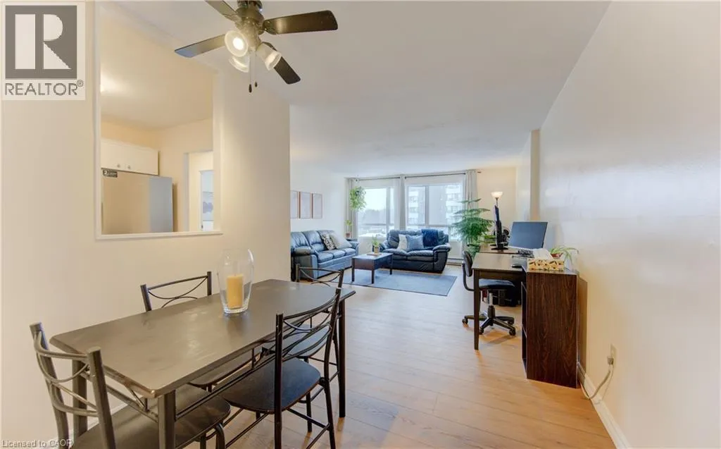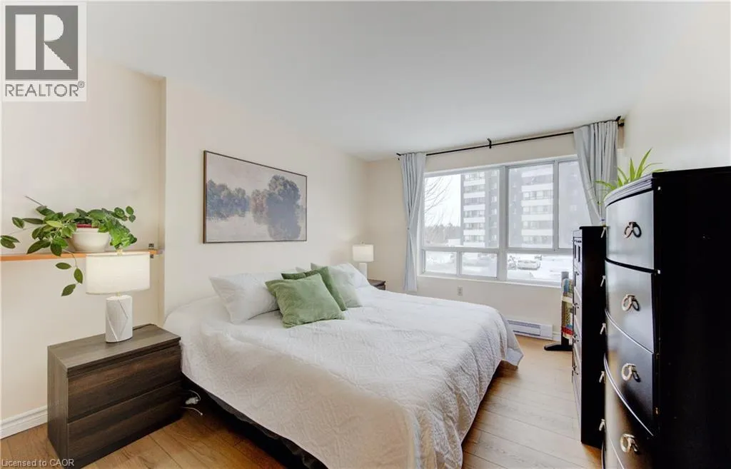 Welcome to effortless living in this bright, move-in ready condo where style meets simplicity. Step inside and youâre immediately greeted by a fresh, airy atmosphere and brand-new luxury vinyl plank flooring (2026) that adds warmth and durability throughout the space. The open-concept living and dining area feels surprisingly spacious, easily accommodating a large sofa or sectional, making it ideal for relaxing evenings or hosting friends. Natural light enhances the neutral palette, creating a calm, inviting environment that feels like home the moment you arrive. The kitchen is both functional and modern, featuring updated stainless steel appliances including a dishwasher, with a layout that keeps you connected to the main living space. The well-proportioned bedroom offers comfort and privacy, while the convenience of in-suite laundry and dedicated storage ensures everything has its place. One parking space is included, and the current owners rent a second space for $40/month. Secure entry, elevator access, and an on-site fitness room complete this low-maintenance lifestyle package. Set in Kitchenerâs desirable Victoria Hills neighbourhood, this address truly shines for convenience. Walk to Food Basics, Real Canadian Superstore, Highland Hills Mall, cafés, restaurants, pharmacies, and everyday essentials along Highland Road in just minutes. Major bus routes are close by, making commuting to Uptown Waterloo, Downtown Kitchener, or the universities simple and stress-free. Nearby parks and trails provide green space for evening walks or weekend downtime. Whether youâre a first-time buyer, downsizer, or investor, this location delivers a connected, urban lifestyle where daily errands are effortless and everything you need is right at your doorstep. (id:27476)