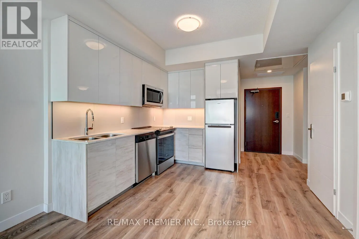 Cross Streets: Frederick & Duke. ** Directions: . This 1-bedroom plus den at DTK Condos is the kind of place that just makes sense. The open layout feels bright and comfortable, with floor-to-ceiling windows letting in tons of natural light. The den works perfectly as a home office, reading nook, or extra storage, depending on how you live.The kitchen is clean and modern with stainless steel appliances and quartz counters, and the smart home features let you control the lights, thermostat, and locks with ease. Step out onto the oversized enclosed west-facing balcony and wind down while the sun sets. It's a great spot to relax at the end of the day.You've got everything you need in the building too, including a concierge, gym, yoga room, party space, rooftop terrace with BBQs, and even a mini dog park. Right in downtown Kitchener, you're steps to the Market, restaurants, shops, transit, and the ION LRT, with easy access to nearby universities.Easy living in a great location. (id:27476)