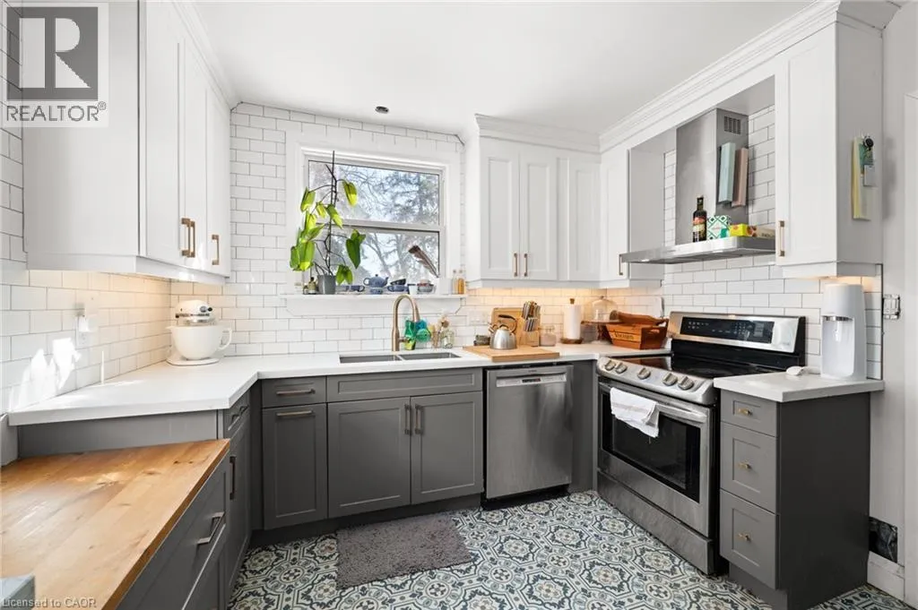 Corner of Queen and Highland **Available April 1st |Â Utilities Included** Not your typical cookie-cutter rental. This is a place you actually want to come home to. **Set on the main level near St Maryâs Hospital, Downtown Kitchener, and Woodside Park, this 2-bedroom delivers over 1,050 sq ft of space that feels intentional, and not a white box in the sky. Everything is on one level, with full exclusive access to the unfinished basement with laundry and storage. **The kitchen is built for cooking and dancing. Quartz countertops, soft close cabinetry, quality appliances, and storage for all your kitchen gadgets. The living room is oversized, bright and social, with room for a full sectional, friends, and downtime, finished with original gum-wood trim and etched glass doors that give the home its character. A separate dining room off the kitchen is ideal for long dinners, cocktail nights, or working from home without taking over the living room or second bedroom. **Outside is where you can relax on summer evenings. A large backyard and deck give you space to unwind, grill, or catch some sun without leaving home. Two parking spaces are included, plus access to a shared garage for bikes, boards, and camping equipment. The home is part of a well kept duplex and will be professionally painted and deep cleaned before move in. **This home is best suited to tenants who value space, design, and a quieter way of living. CONTACT VIA EMAIL ONLY (id:27476)