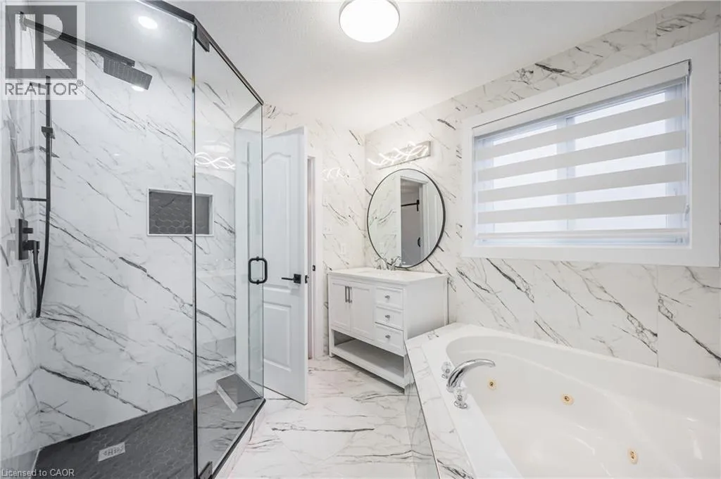 Doon South Dr to Steepleridge St RENOVATED FROM TOP TO BOTTOM with over 2700Sqft of living space! Located in one of the most desirable neighbourhoods in Kitchener, welcome to 125 Steepleridge Street in the Doon South Area. This CARPET FREE home is fully finished inside and out, it has three large bedrooms, four bathrooms, and second floor family room that you can surely say WOW to! You can hang out in two of the big living spaces, or go downstairs to have fun in the massive recreation room. Plus, there's a cozy fireplace in the living room. This modern NEW KITCHEN has it all as it offers shiny new countertops, plenty of cupboards and stainless steel appliances. Outside, there's a deck where you can relax and a shed for all your storage needs. The second floor family room is very cozy to have your friends and family over for a movie. The primary bedroom has its own ensuite bathroom and a sleek fireplace. The house has had lots of upgrades in the past couple of years, like a new roof, bathrooms, flooring, painting, plumbing, light fixtures and a lot more. The garage door and front door are also new. Even the floor is special with it being vinyl plank, making it FRIENDLY TO PETS (Waterproof)! Most updates were completed in 2022-2024 and a NEW ROOF in 2021. The basement is all finished too, with a big room for playing and another bathroom. You can even make a separate entrance from the garage if you want! This house is SUPER CLOSE to the 401 for people who need to drive to work. There are also awesome schools, parks, and places to shop nearby. You should come and see this house for yourself! It's really great! Schedule your private showing today! (id:27476)