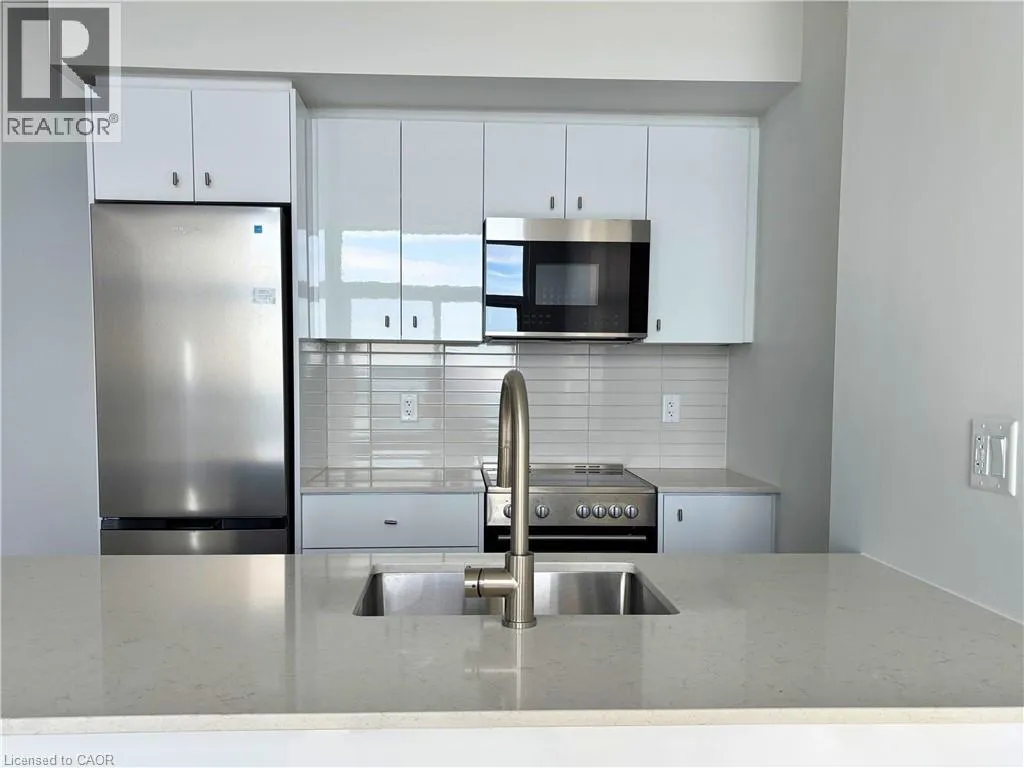 King St W to Wellington St S Welcome to Station Park. This bright, top-floor suite features fantastic views, no neighbours above, and a modern open-concept layout. The kitchen is designed with a large island and breakfast bar, stainless steel appliances, and in-suite laundry. The spacious bedroom boasts a walk-in closet and convenient ensuite access to the 4-piece bath. Rent includes internet, A/C, and heat; tenants pay hydro and water. One parking space and a private locker are included. Enjoy exceptional amenities: sauna, outdoor gym, half running track, fitness and Peloton studio, bowling lanes, lounge and bar, music room, and hydro-pool swim spa. Steps to Google, the University of Waterloo School of Pharmacy, and downtown Kitchener. (id:27476)