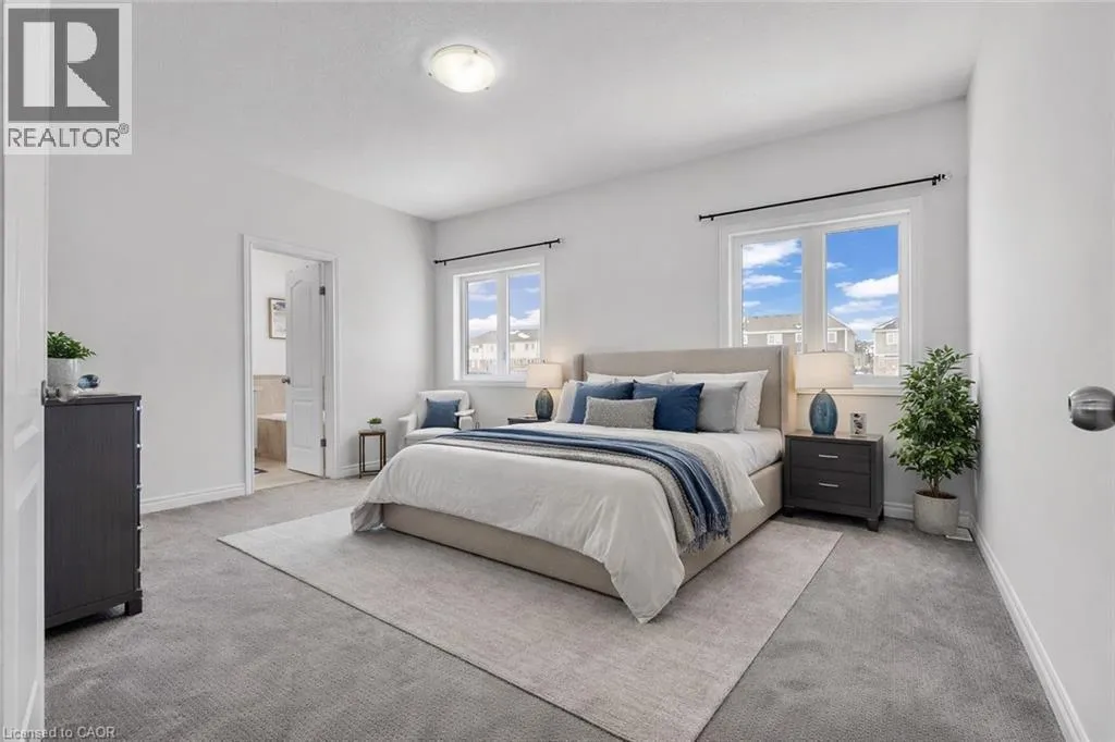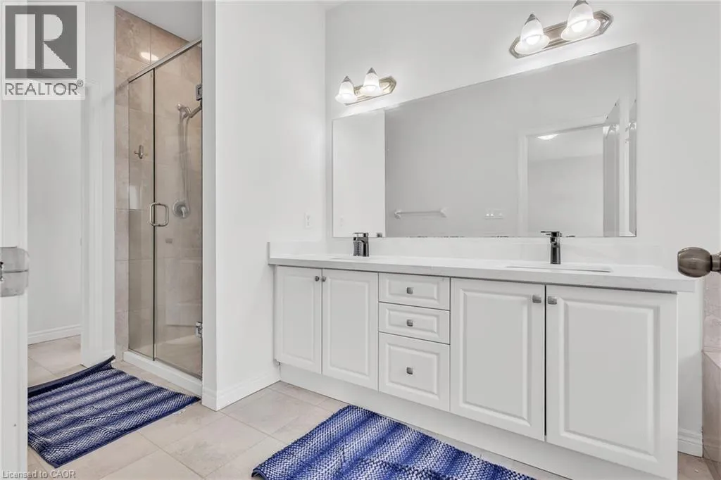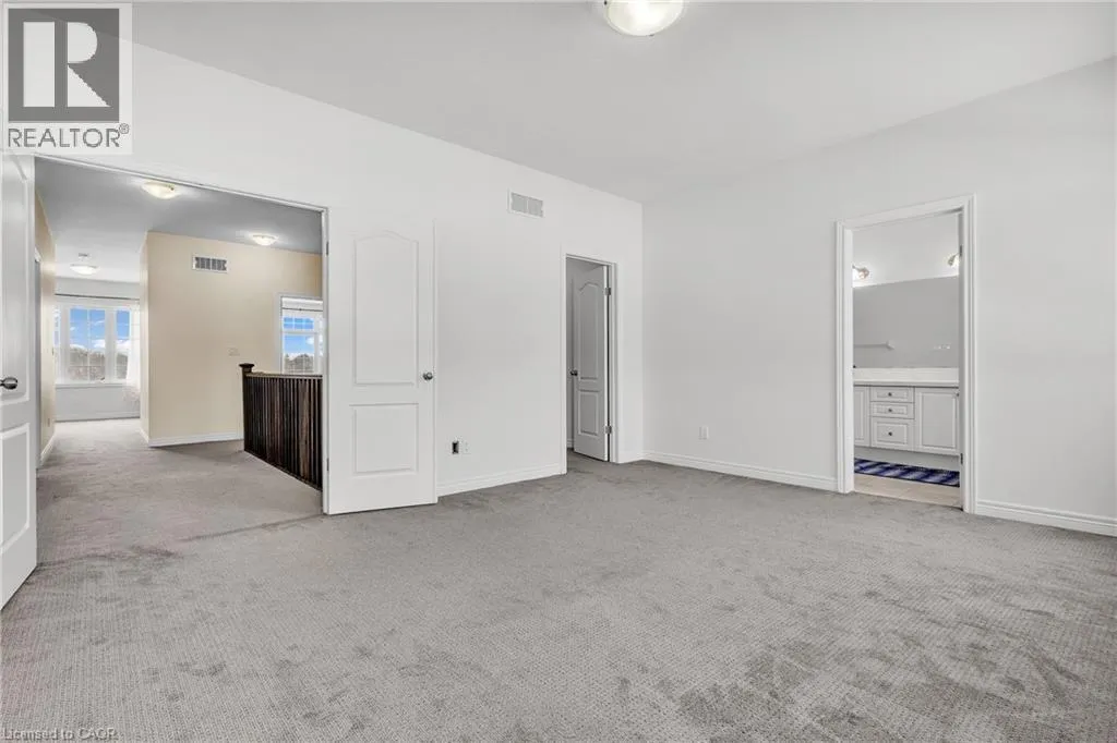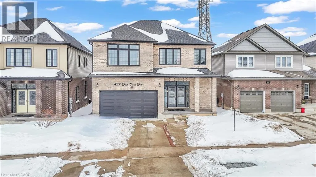 Homer Watson Blvd to Blair Creek Dr. Property located on Blair Creek Drive. Welcome to 438 Blair Creek Drive, Doon South â an extensively upgraded home offering approx. 3,148 sq. ft. of finished living space. The main level features 10-ft ceilings, new luxury vinyl flooring, and a striking two-sided gas fireplace serving the living and dining areas, creating a warm focal point within the open-concept layout. The chefâs kitchen showcases quartz countertops, gas range, pantry, designer backsplash, and modern finishes. A rare main-floor bedroom with a full bath provides excellent flexibility for guests or multi-generational living. The upper level offers 9-ft ceilings, spacious bedrooms, and two primary suitesâone with a walk-in closet and spa-inspired ensuite, and the second with his-and-her closets and private bath. The approx. 1,459 sq. ft. unfinished basement with 9-ft ceilings and bathroom rough-in presents excellent future potential. 200-amp electrical service supports modern living needs. Additional highlights include a double-wide extended driveway, epoxy-finished double-car garage, and a 35â x 15â aluminum-covered patio with concrete base, ideal for year-round entertaining. The private backyard backs onto the Doon South walking trail with mature cedar trees for added privacy. Conveniently located minutes to Hwy 401, major shopping, parks, and schools. (id:27476)