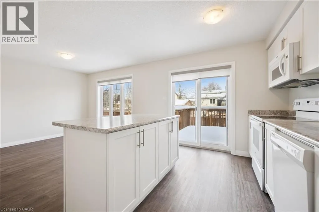 King St E to River Rd; Left on Morrison, development on immediate left Looking for 3 bright bedrooms, 2 full bathrooms, 2 owned parking spaces and 1300+ sqft of finished living space over 2 separate levels? Look no further than D10-24 Morrison Rd! Purpose-built as an entry level option, this main and second level offering balances affordability and value for a wide range of purchasers, including first-time buyers, young professionals, commuters, growing families and astute investors. This exceptional opportunity with low condo fees is available now and perfectly situated in Kitchener Eastâs family oriented Chicopee community. With quick access to HWY 8 and the 401, and convenient to Fairview Mall, well-anchored Fairway Rd shopping plazas, Sportsworld Crossing and Costco, new homeowners can get where they need to go with ease. Further, this unit is just steps to public transportation, and less than 150m to the FUTURE LRT extension connecting Kitchener Fairway station to Cambridge. Private secure entry from ground level makes coming and going a breeze for all ages. Handy front entry closet, laundry/ utility room, dedicated storage and a bright 3rd bedroom on the main level; the upper 2nd level presents 2 sun-filled good-sized bedrooms, a four-piece bath, open concept bright and inviting living/ entertaining area and a kitchen complete with extensive cabinetry and countertop workspace. Contemporary paint completes the look. Sliders to private deck for further outdoor entertaining. Nature lovers will appreciate the convenience to greenspace, mature woodlots, city parks, community trails, Chicopee Ski Hill and Tube Park, and the canoeing/ paddling and fishing opportunities of the Grand River. Whether youâre looking to make a strategic entry into the housing market, edging up for more space, or adding to your portfolio, this property offers comfort, community, convenience, and peace of mind living for years to come. Donât miss outâcall your Realtor® today to schedule a viewing and start envisioning your future at 24 Morrison Rd! (id:27476)