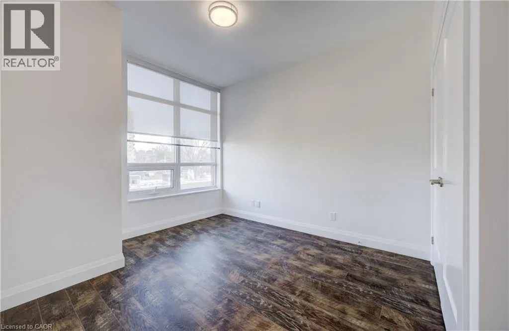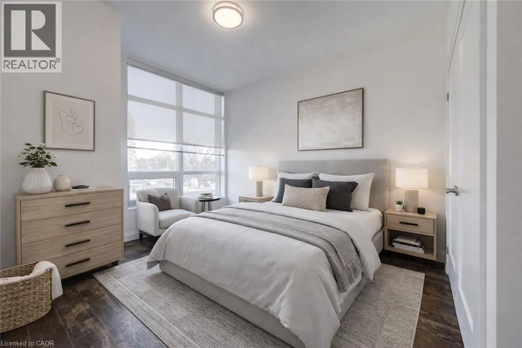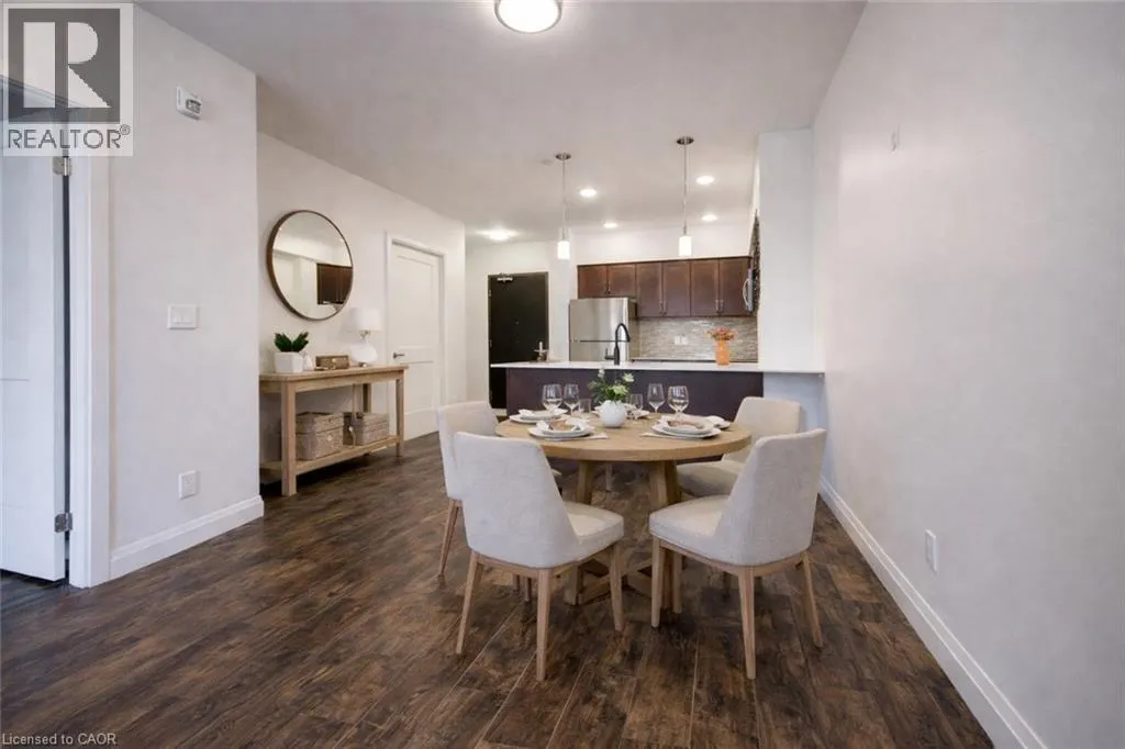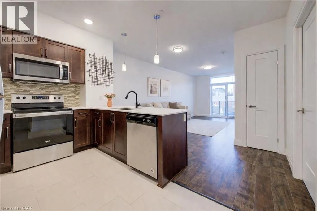 ON-401 W to King St E in Kitchener; Follow King St E, Stirling Ave S and Courtland Ave E. Floor Four, unit 417. Welcome to urban living at its finest in this stylish 1-bedroom, 1-bath condo on the 4th floor of Kitcheners' sought-after Barra on Queen Condos! From the moment you step inside, the custom design and thoughtful upgrades set this unit apart. The modern kitchen boasts an extended island with seating, perfect for entertaining or enjoying your morning coffee. The open-concept layout flows seamlessly to a spacious living area and out to your private balcony with plenty of room for seating, an ideal spot to relax and soak in the view. The bathroom has been beautifully updated with a sleek walk-in shower, offering a modern and functional touch. Just off the entryway, a stylish barn door leads to the in-unit laundry, full-size machines and smart design that maximize space without sacrificing convenience. With your own parking spot and thoughtful layout throughout, this condo is designed for easy, everyday living. Enjoy amenities galore right at your doorstep: a fully equipped gym, bookable party room, outdoor BBQ space, guest suite and even a pet run for your four-legged friends. And the location? Absolutely dynamic steps to Victoria Park, the LRT, trendy restaurants, nightlife, shops, public transit, and all of Downtown Kitcheners' best festivals and events. Whether you're a first-time buyer, investor, or downsizer, this condo checks all the boxes for modern city living. Don't miss your chance to call this stylish space home! (id:27476)