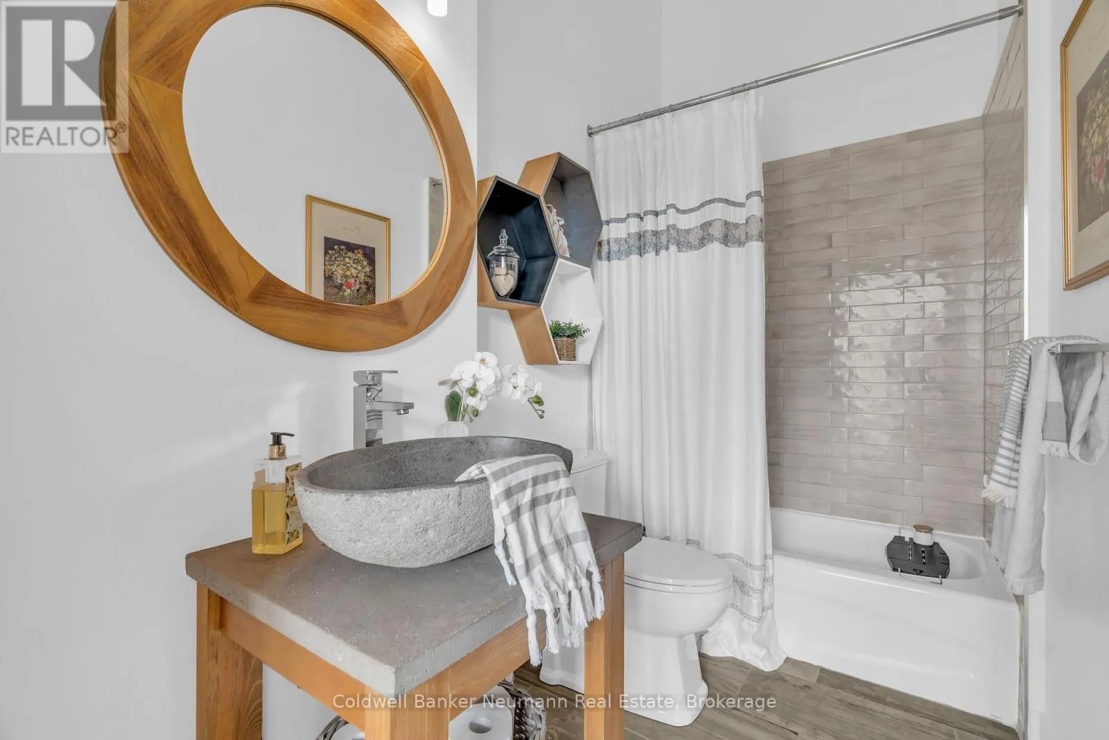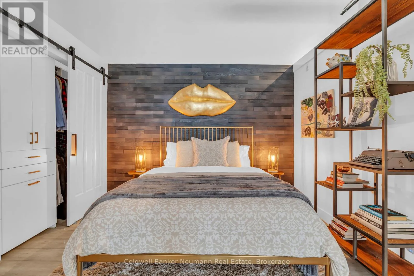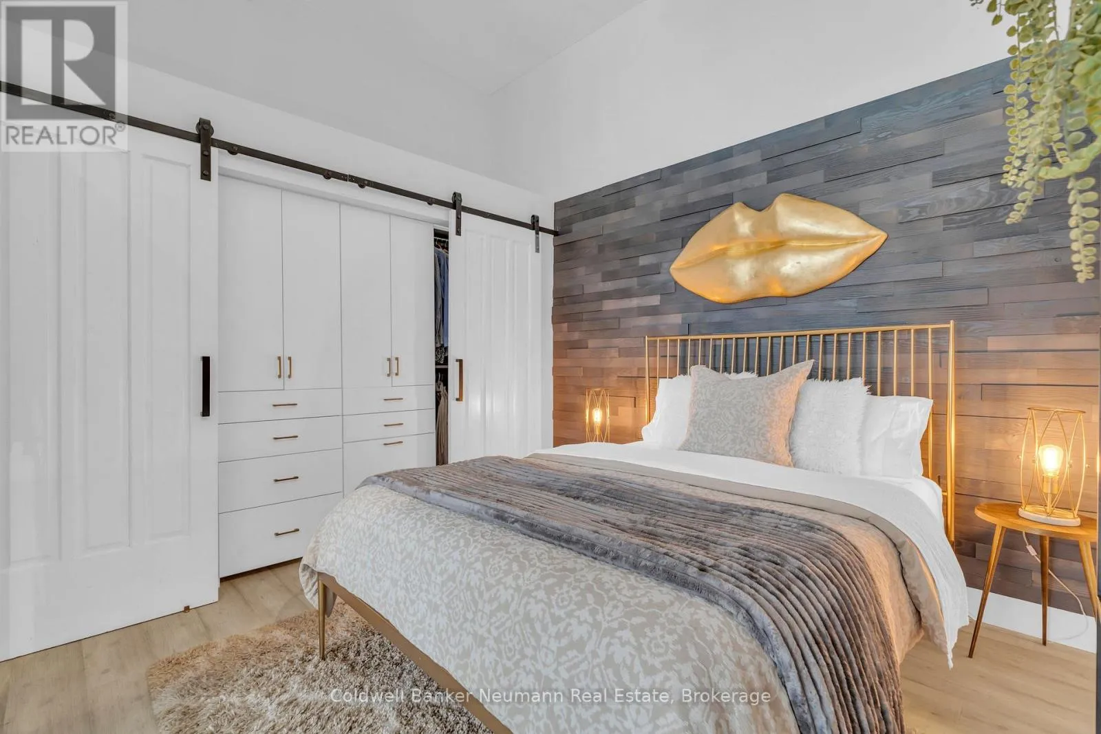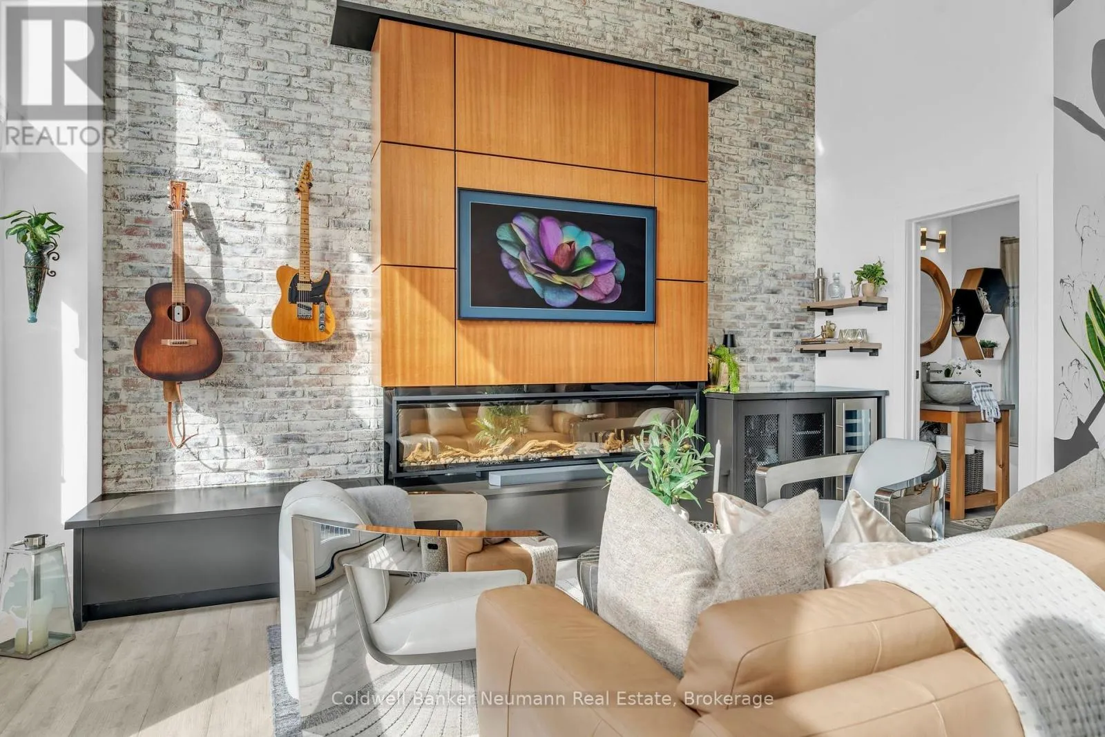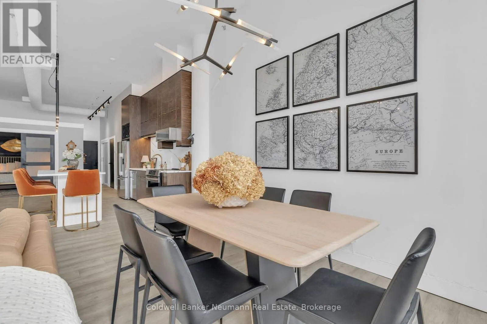 Cross Streets: King St W and Water St N. ** Directions: Victoria St N, Left on Water St N, Left onto King St W. One-of-a-Kind Loft in the Heart of Downtown Kitchener. Welcome to Unit 205 at The Lofts at 276, a stunning, modern, 1-bedroom, 2-bathroom suite that seamlessly blends industrial charm with luxurious finishes. This exceptional, one-of-a-kind space, offers soaring 12-foot ceilings, floor-to-ceiling windows, and garden doors that flood the open-concept living and dining area with natural light. Every detail has been thoughtfully curated, from the wide plank vinyl flooring to the custom design elements throughout. The gourmet kitchen is a chefs dream, featuring rich dark wood cabinetry, veined quartz countertops and backsplash, an oversized island with breakfast bar, custom wine rack, statement lighting and an eye-catching feature wall with built-in buffet. The expansive living area is perfect for both entertaining and relaxing, anchored by a custom fireplace surround with integrated dry bar, wine fridge, and complemented by a warm brick accent wall that adds character and texture. Elegant garden doors open to a Juliette balcony, adding a touch of European charm. The dining space comfortably accommodates family gatherings, offering the perfect setting for special occasions.The main bathroom offers a stylish vanity with a stone vessel sink and a tub with textured tile surround. Additional features include in-suite laundry, underground parking, and an oversized storage locker located just steps from your vehicle. Retreat to the primary suite through double doors to find a wood accent wall, sliding closet barn doors, a custom closet organizer, and a private ensuite. The spa-inspired bathroom includes a walk-in shower with striking black-framed glass doors, wood-look tile, and a generous niche with accent details. Set in a beautifully converted loft building with modern lobby, this home places you in the heart of vibrant Downtown Kitchener just steps from cafés, restaurants, transit, schools, entertainment, and Victoria Park. Urban luxury and everyday convenience await. (id:27476)