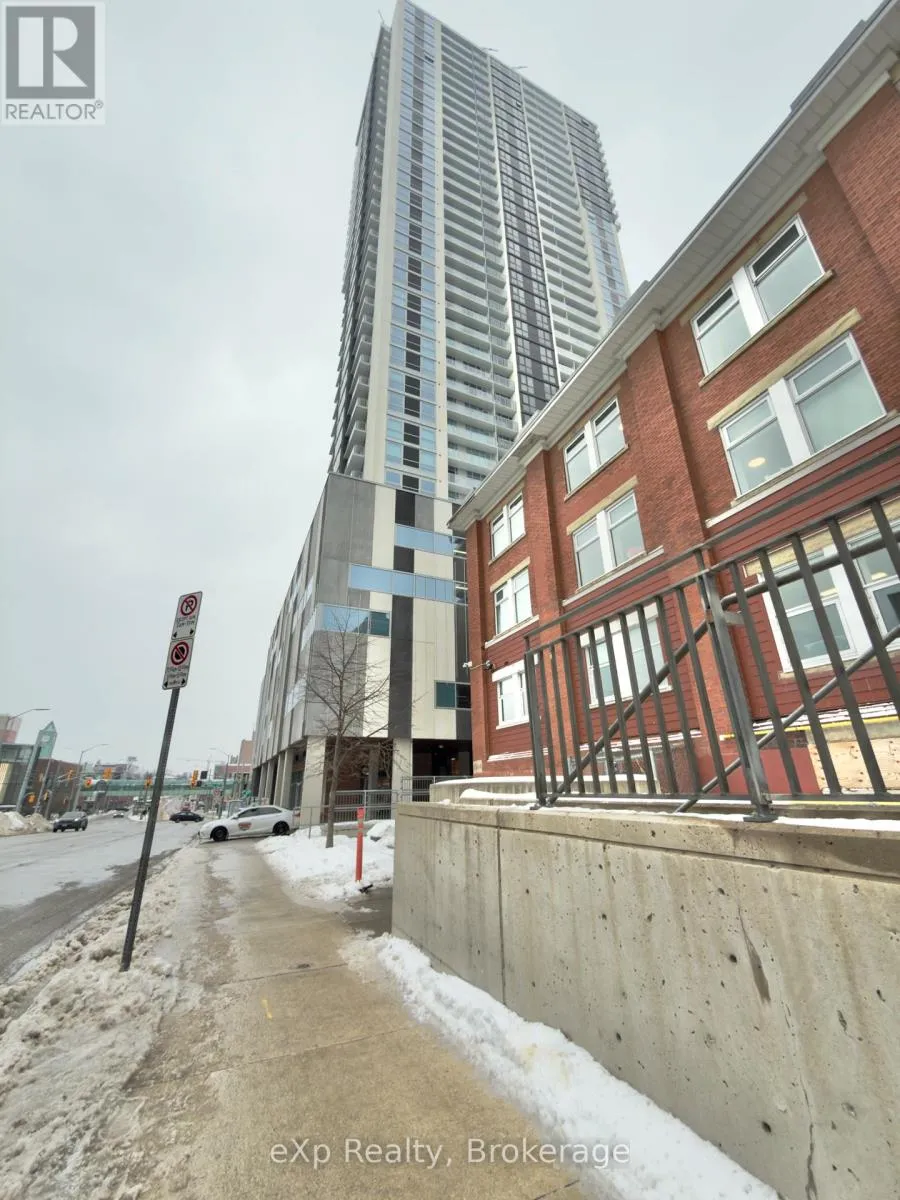 Cross Streets: Duke Street & Frederick St. ** Directions: King Street East or Weber Street East to Frederick Street. Discover elevated city living at Unit 2514, 60 Frederick Street, a modern 2-bedroom, 2-bathroom condominium in one of Downtown Kitchener's most recognizable high-rise buildings. Located on the 25th floor, this thoughtfully designed suite showcases sweeping views across the Waterloo Region. The unbeatable location places you within walking distance of the LRT, Conestoga College's Downtown Campus, major tech hubs, dining, and shopping. The interior blends style and functionality, featuring engineered hardwood flooring, a contemporary kitchen with clean lines, and integrated smart home features including keyless entry, smart climate control, and lighting. Two generously sized bedrooms and two full bathrooms provide flexibility for professionals, roommates, or students seeking comfort and privacy. Residents benefit from an impressive selection of building amenities such as a 24-hour concierge, fitness and yoga spaces, rooftop terrace, party and meeting rooms, bicycle storage, car-sharing services, and EV charging stations. Offering convenience, modern living, and an unbeatable downtown location, this condo is ideal for those seeking a connected urban lifestyle. (id:27476)