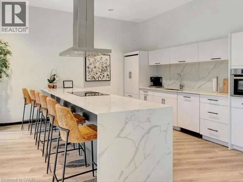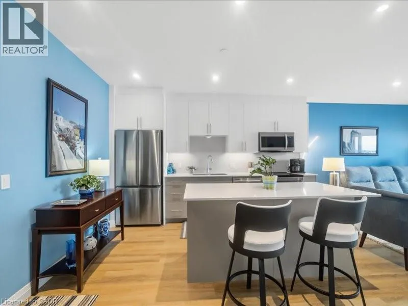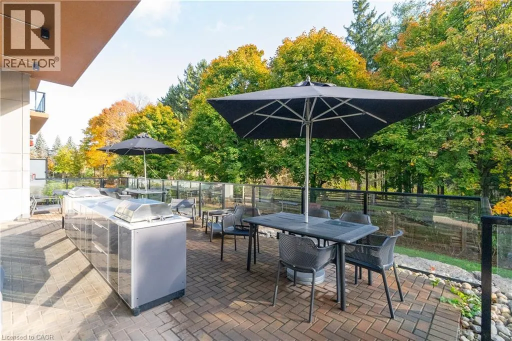 Welcome to 525 New Dundee Road, Unit 710. A beautifully appointed one-bedroom residence in a newer, impeccably maintained building in Kitchener. This is where modern design meets effortless living, offering a refined atmosphere with the perfect balance of tranquility and convenience. Unit 710 showcases a thoughtfully curated open-concept layout that feels both sophisticated and inviting. The elegant kitchen is finished with stainless steel appliances, a sleek induction stove, contemporary cabinetry, and a generous island that anchors the space. Ideal for entertaining guests or enjoying quiet evenings at home. The living area flows seamlessly to a private balcony, offering peaceful views and a sense of privacy just beyond the city core. Remote-control blinds enhance the space, providing both convenience and a polished, modern touch at the push of a button. Whether youâre enjoying your morning coffee or unwinding at the end of the day, this living space feels both comfortable and elevated. The primary bedroom is enhanced with custom built-in wardrobe and storage solutions, maximizing functionality without compromising style. Additional highlights include in-suite laundry, ample storage, and modern finishes throughout, all contributing to a clean, elevated aesthetic. Residents enjoy access to premium amenities, including a fully equipped fitness centre, sauna, stylish party room, quiet library, dog wash station, and a beautifully landscaped outdoor terrace complete with BBQs. Thoughtfully designed for both relaxation and entertaining. Ideally located just minutes from Highway 401, Conestoga College, shopping, dining, and scenic walking trails, this address offers seamless connectivity while maintaining a calm, residential atmosphere. Whether youâre seeking your first home, a sophisticated downsizing opportunity, or a smart investment, Unit 710 delivers comfort, quality, and lifestyle in one complete, polished package. (id:27476)