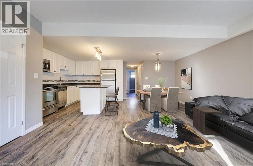 Fischer Hallman to Rachel Discover exceptional value and comfort in this well-cared-for 2-bedroom condo, perfectly situated in one of the areaâs most sought-after neighbourhoods. Offering very low condo fees and a lifestyle of true convenience, this home is ideal for first-time buyers, downsizers, and savvy investors alike! Step inside and be welcomed by a bright, open-concept living space designed for everyday enjoyment. The modern kitchen features stylish white shaker-style cabinetry, glistening stainless steel appliances, and a practical kitchen islandâperfect for meal prep, dining, or entertaining guests. The in-suite stackable washer and dryer add incredible convenience, making laundry day a breeze. Both bedrooms are generously sized and filled with natural light, providing comfortable private retreats. This well-maintained building includes 1 dedicated parking spot, giving you peace of mind and easy access every day. Location truly sets this condo apart: just steps from vibrant shopping plazas, popular restaurants, and a newly constructed community centre. Commuters will love being only minutes from Highway 401 and Conestoga College, making travel simple and efficient. Whether you're looking to settle into your first home or secure a stress-free investment, this condo offers the perfect blend of affordability, style, and location. This home is also boasting a brand new 2026 Air Handling/Furnace unit! An extra $6K value! (id:27476)